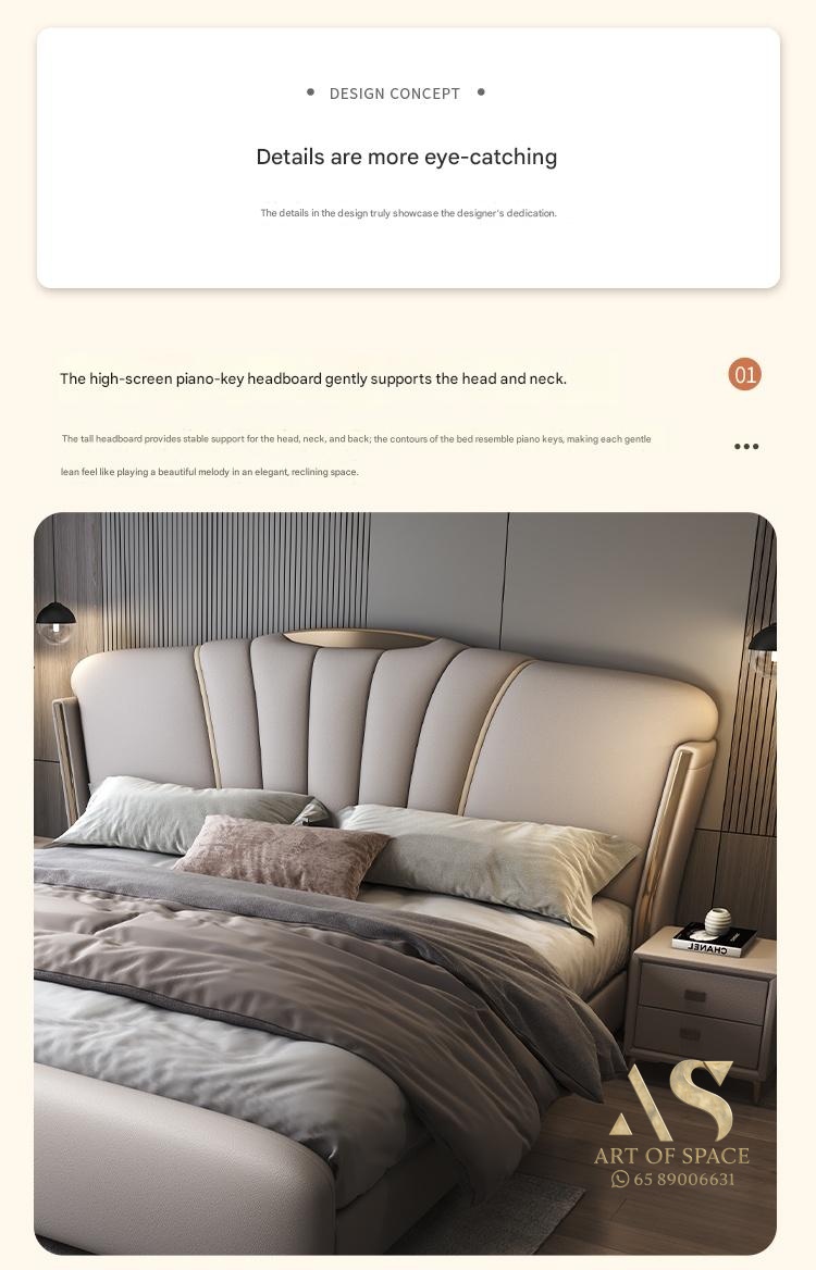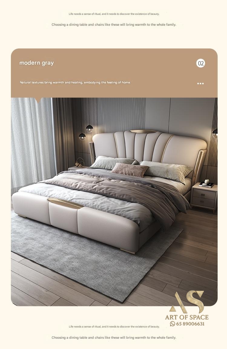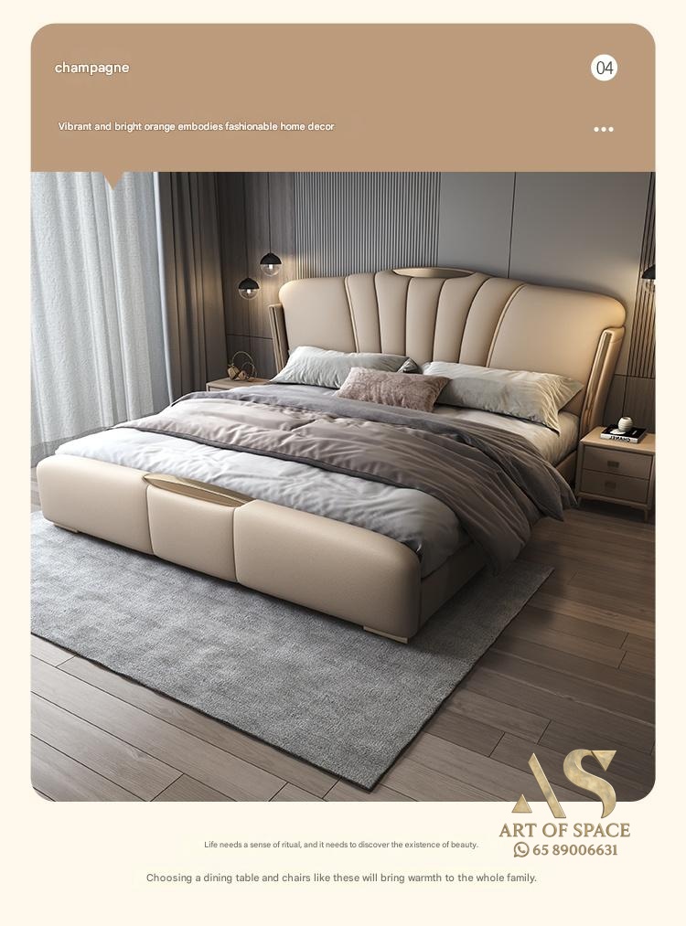 Italian Light Luxury – Italian Light Luxury Genuine Leather Bed Main Bedroom 1.8m Large Bed D