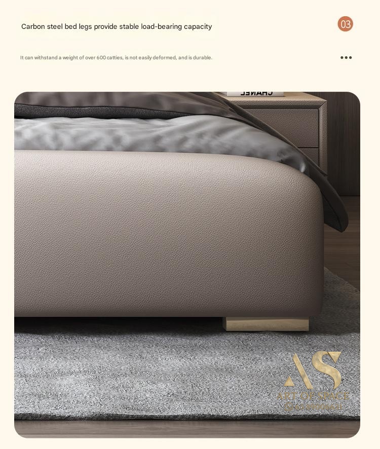 Experience timeless elegance and supreme comfort with this high-end leather bed, perfect for upgrading your master bedroom. Its sturdy yet stylish design offers peace of mind, while the luxurious Napa leather adds a touch of refinement. Transform your sleep space today and indulge in restful nights.