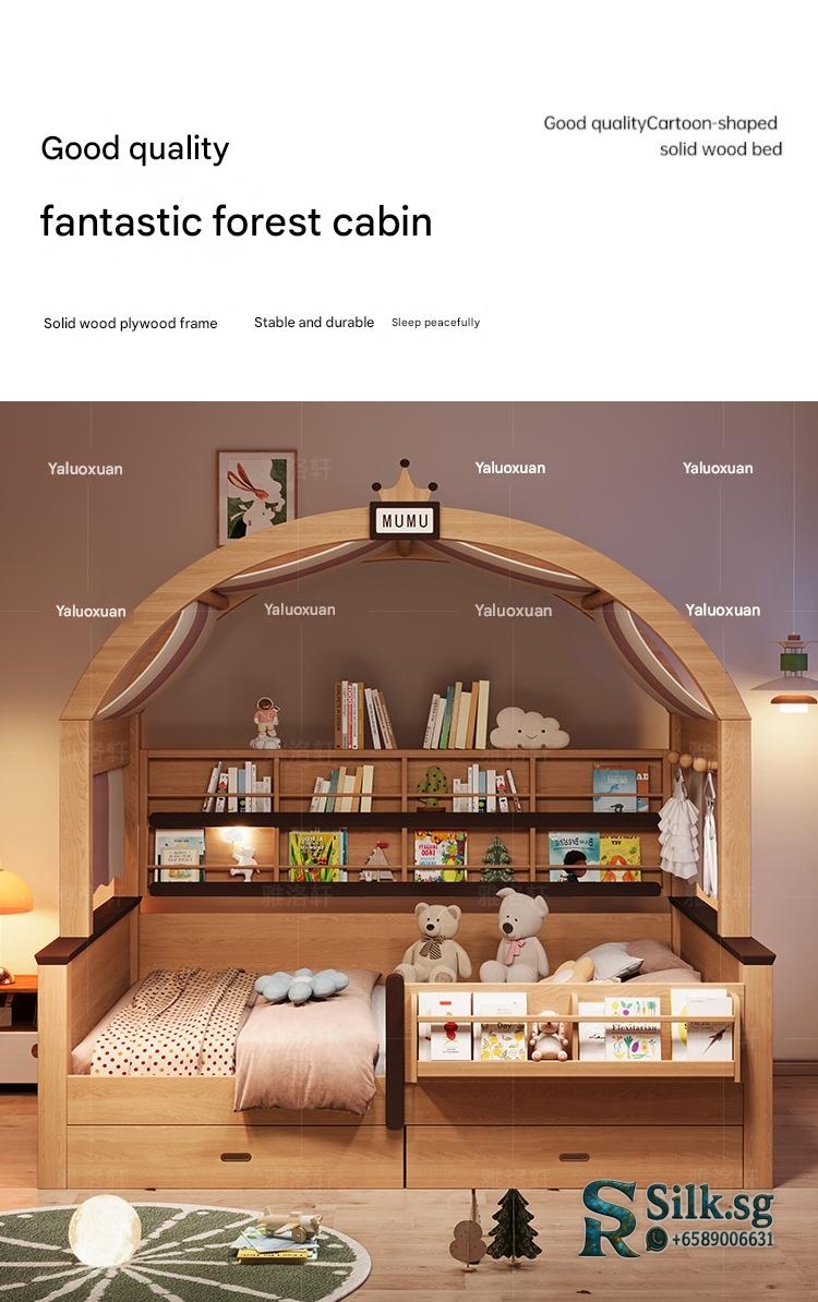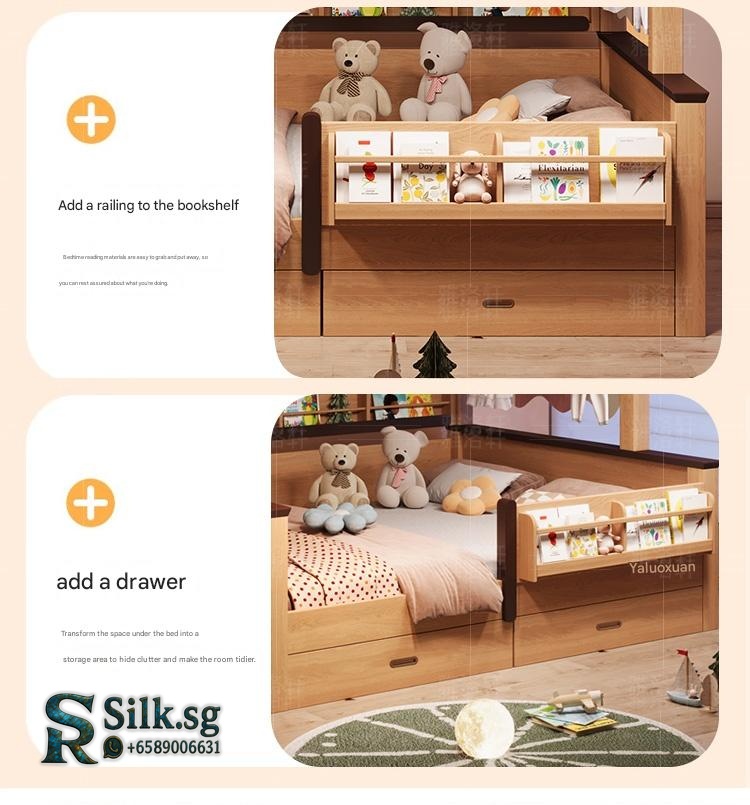 Natural Wood Color C – Natural Wood Color Children’s Wardrobe Bed Combo for Small Apartments,