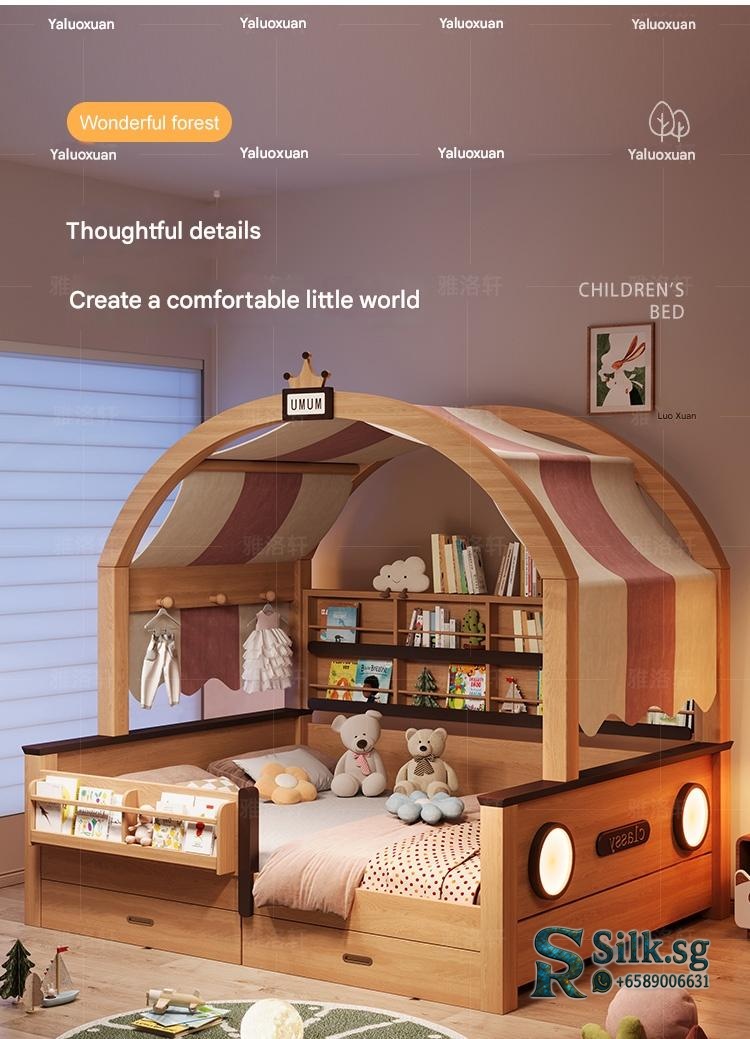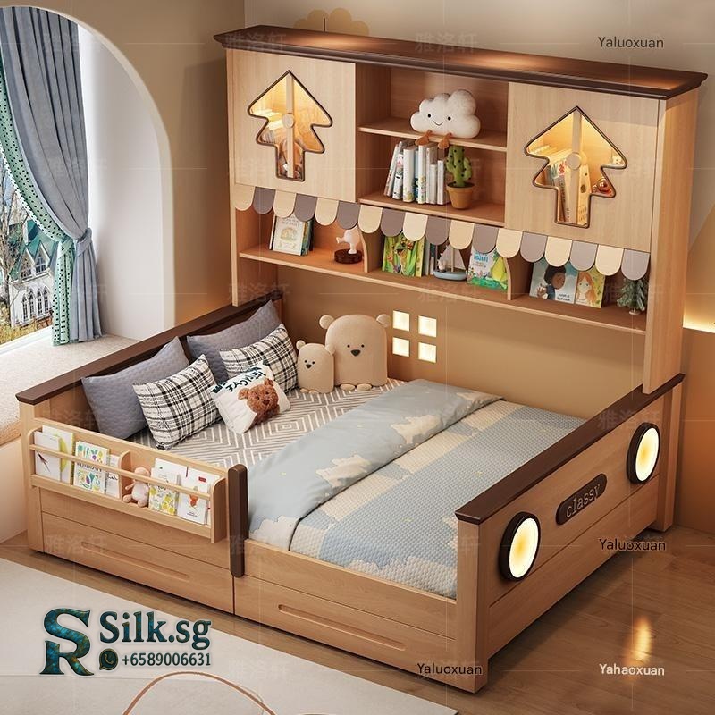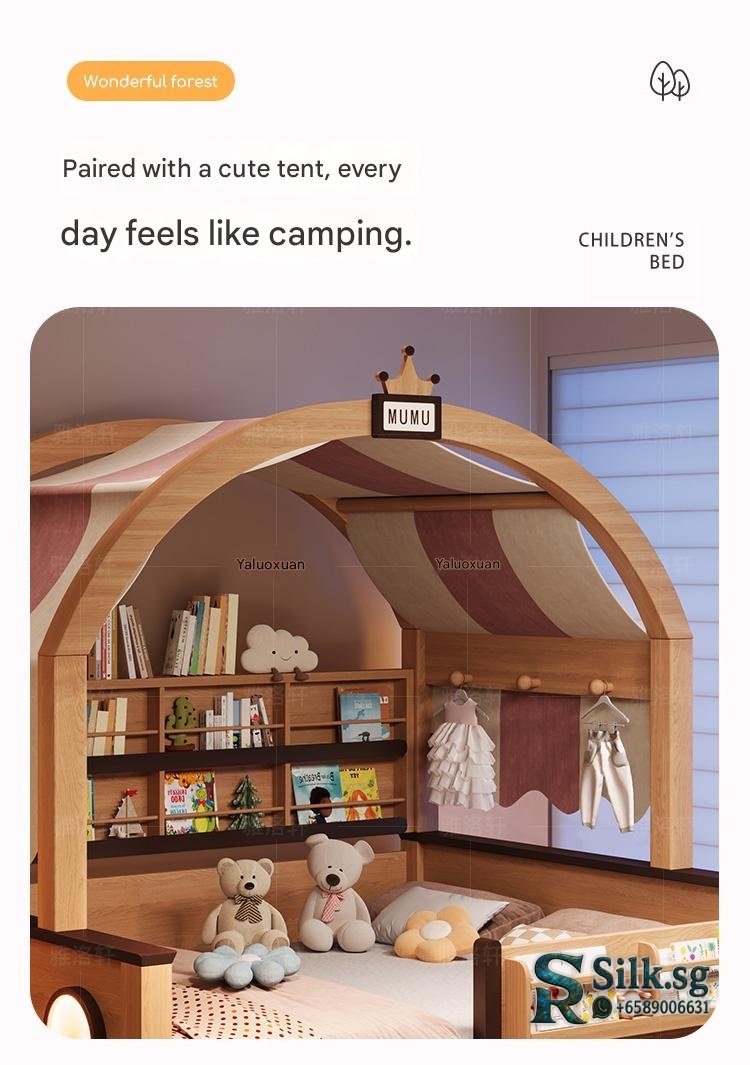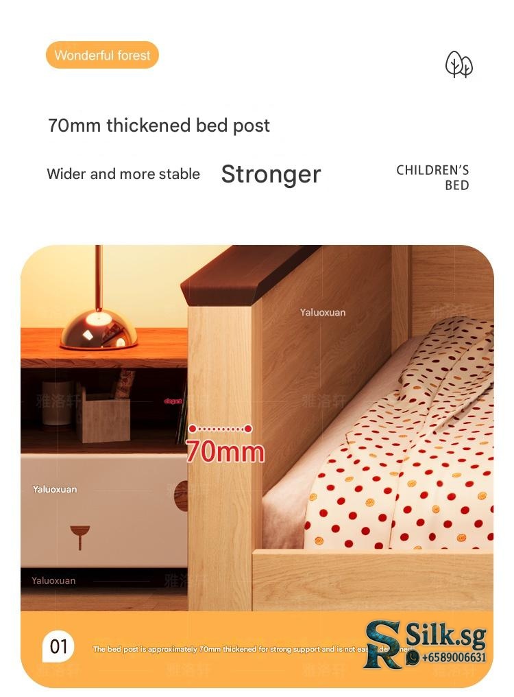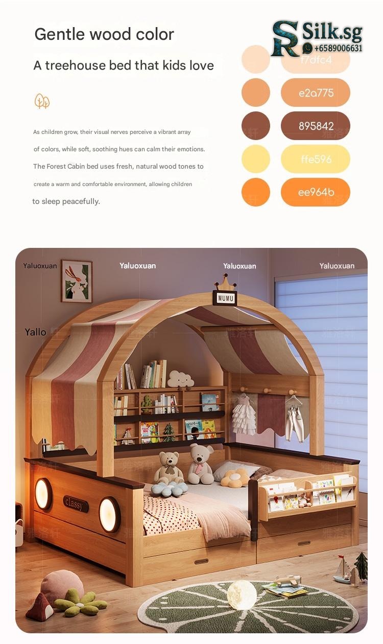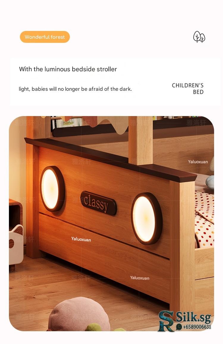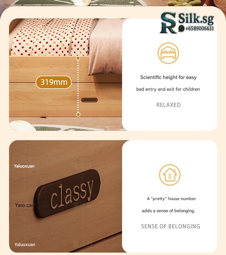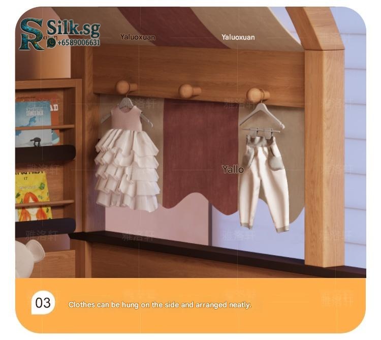 This natural wood color childrens wardrobe bed combo offers a cozy, space-saving solution for small apartments, with a sturdy guardrail for safety and charming childlike designs. Perfect for creating a warm, organized bedroom that kids will love, making bedtime a delight.