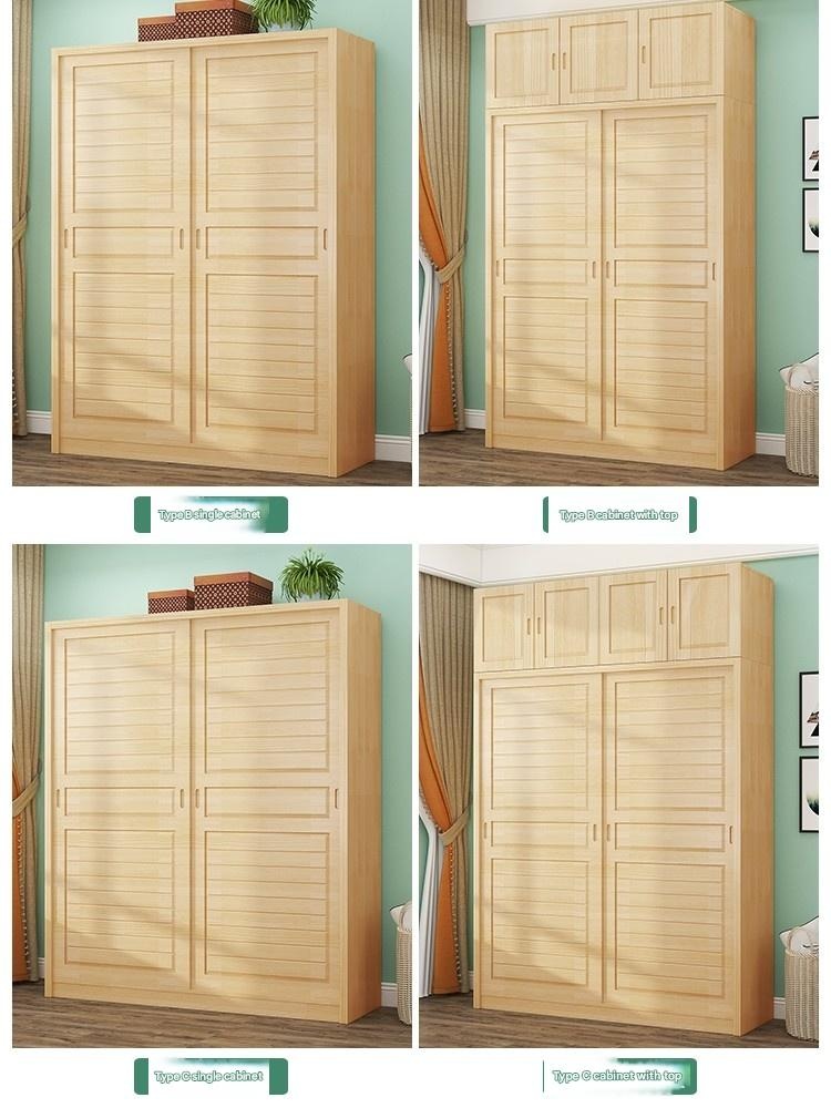 Suimuyuan – Solid Pine Wood Wardrobe, Modern Minimalist Sliding Door C