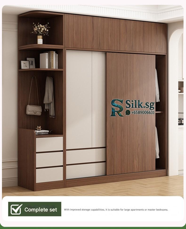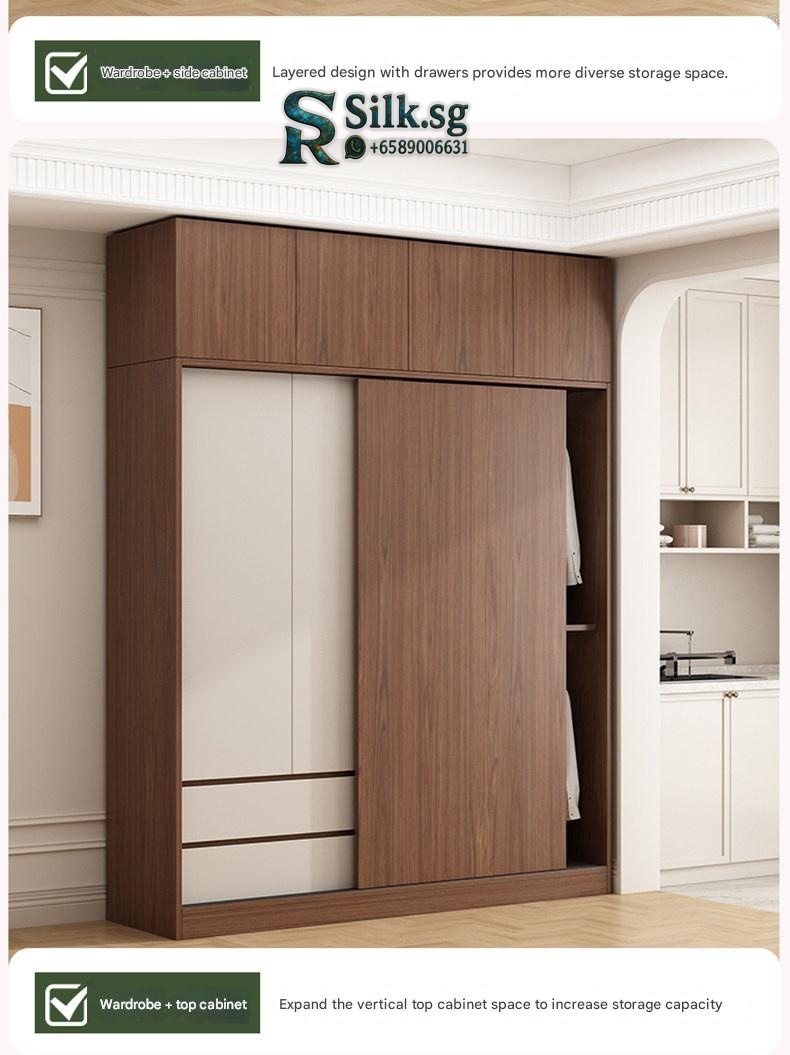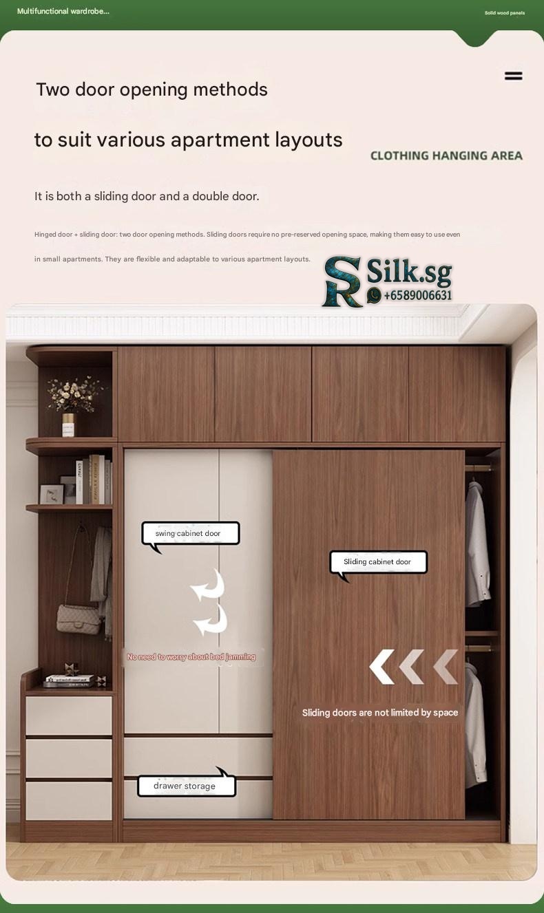 Elevate your space with this natural wood wardrobe, offering durable solid wood eco-board construction and customizable options. Perfect for small apartments or bedrooms, it combines stylish sliding and swing doors for sleek, easy storage. Transform your home today.