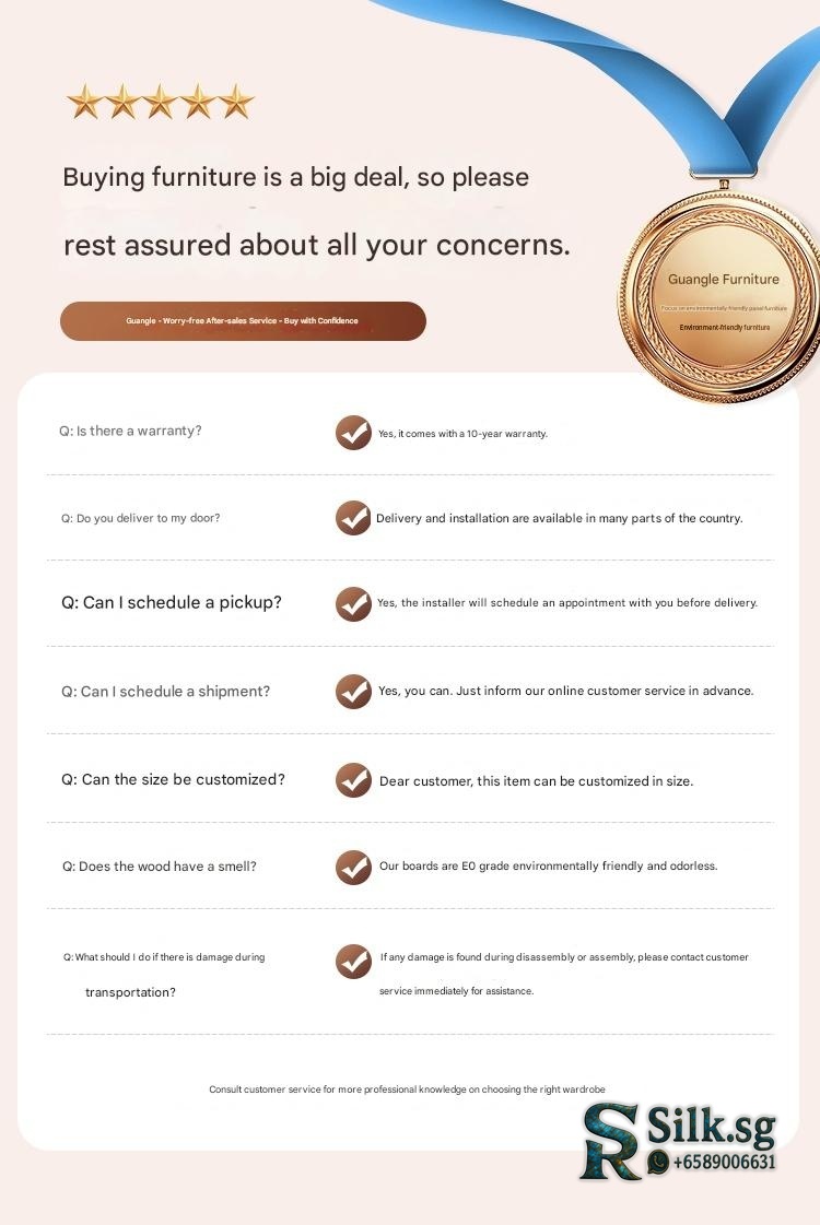 Senlan Meijia – European Style Cream Wooden Wardrobe, 6 – Door Assembl