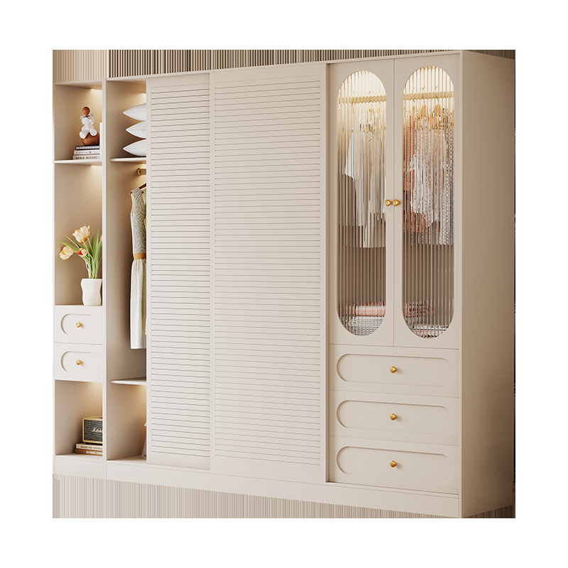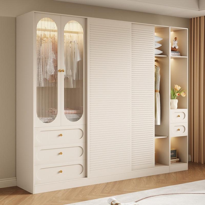 Y69 – French Cream Rustic Sliding Door Wardrobe 2025 Modern Minimalist