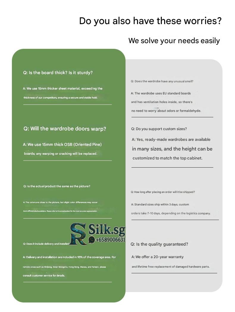 | Configuration | 0.8m Two-door (ENF Touch-sensitive OSB) [No Glass Door], 0.8m Two-door + 0.4m Side Cabinet (ENF Touch-sensitive OSB) [With Glass Door], 0.8m Two-door + 0.4m Side Cabinet + Top Cabinet (ENF Touch-sensitive OSB) [With Glass Door], 0.8m Two-door + Top Cabinet (ENF Touch-sensitive OSB) [No Glass Door], 1.07×1.07 Corner Cabinet (ENF Touch-sensitive OSB), 1.07×1.07 Corner Cabinet (ENF Touch-sensitive OSB) [With Door], 1.07×1.07 Corner Cabinet + Top Cabinet (ENF Touch-sensitive OSB), 1.07×1.07 Corner Cabinet + Top Cabinet (ENF Touch-sensitive OSB) [With Door], 1.2m Three-door (ENF Touch-sensitive OSB) [No Glass Door], 1.2m Three-door (ENF Touch-sensitive OSB) [With Glass Door], 1.2m Three-door + 0.4m Side Cabinet (ENF Touch-sensitive OSB) [With Glass Door], 1.2m Three-door + 0.4m Side Cabinet + Top Cabinet (ENF Touch-sensitive OSB) [With Glass Door], 1.2m Three-door + Top Cabinet (ENF Touch-sensitive OSB) [No Glass Door], 1.2m Three-door + Top Cabinet (ENF Touch-sensitive OSB) [With Glass Door], 1.6m Four-door (ENF Touch-sensitive OSB) [No Glass Door], 1.6m Four-door (ENF Touch-sensitive OSB) [With Glass Door], 1.6m Four-door + 0.4m Side Cabinet (ENF Touch-sensitive OSB) [With Glass Door], 1.6m Four-door + 0.4m Side Cabinet + Top Cabinet (ENF Touch-sensitive OSB) [With Glass Door], 1.6m Four-door + Top Cabinet (ENF Touch-sensitive OSB) [No Glass Door], 1.6m Four-door + Top Cabinet (ENF Touch-sensitive OSB) [With Glass Door], 2.4m Six-door (ENF Touch-sensitive OSB) [No Glass Door], 2.4m Six-door (ENF Touch-sensitive OSB) [With Glass Door], 2.4m Six-door + 0.4m Side Cabinet (ENF Touch-sensitive OSB) [With Glass Door], 2.4m Six-door + 0.4m Side Cabinet + Top Cabinet (ENF Touch-sensitive OSB) [With Glass Door], 2.4m Six-door + Top Cabinet (ENF Touch-sensitive OSB) [No Glass Door], 2.4m Six-door + Top Cabinet (ENF Touch-sensitive OSB) [With Glass Door], 2m Five-door (ENF Touch-sensitive OSB) [No Glass Door], 2m Five-door (ENF Touch-sensitive OSB) [With Glass Door], 2m Five-door + 0.4m Side Cabinet (ENF Touch-sensitive OSB) [With Glass Door], 2m Five-door + 0.4m Side Cabinet + Top Cabinet (ENF Touch-sensitive OSB) [With Glass Door], 2m Five-door + Top Cabinet (ENF Touch-sensitive OSB) [No Glass Door], 2m Five-door + Top Cabinet (ENF Touch-sensitive OSB) [With Glass Door], Side Cabinet (ENF Touch-sensitive OSB) [No Glass Door], Side Cabinet + Top Cabinet (ENF Touch-sensitive OSB) [No Glass Door] |