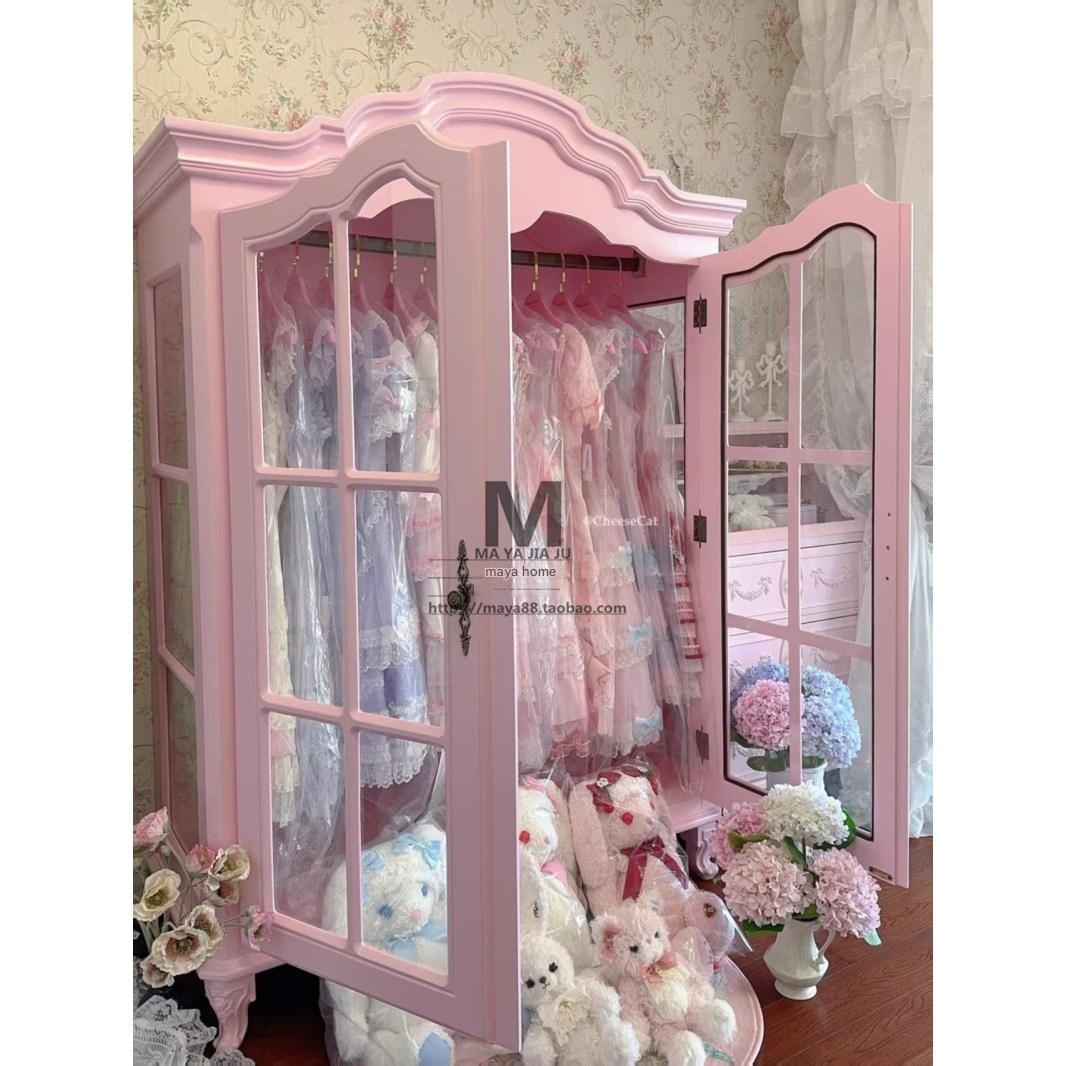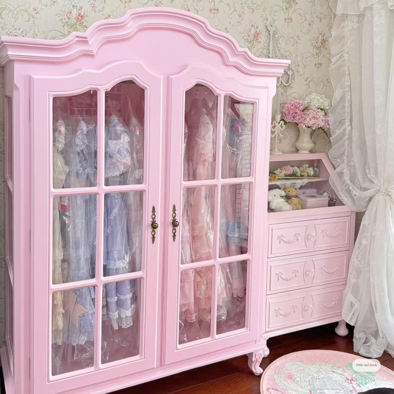 Honghu – French Carved Pink Wood Double Door Princess Wardrobe Customi