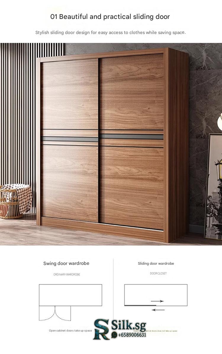 Solid Wood Wardrobe – Modern Sliding Door Closet, Minimalist Design, M