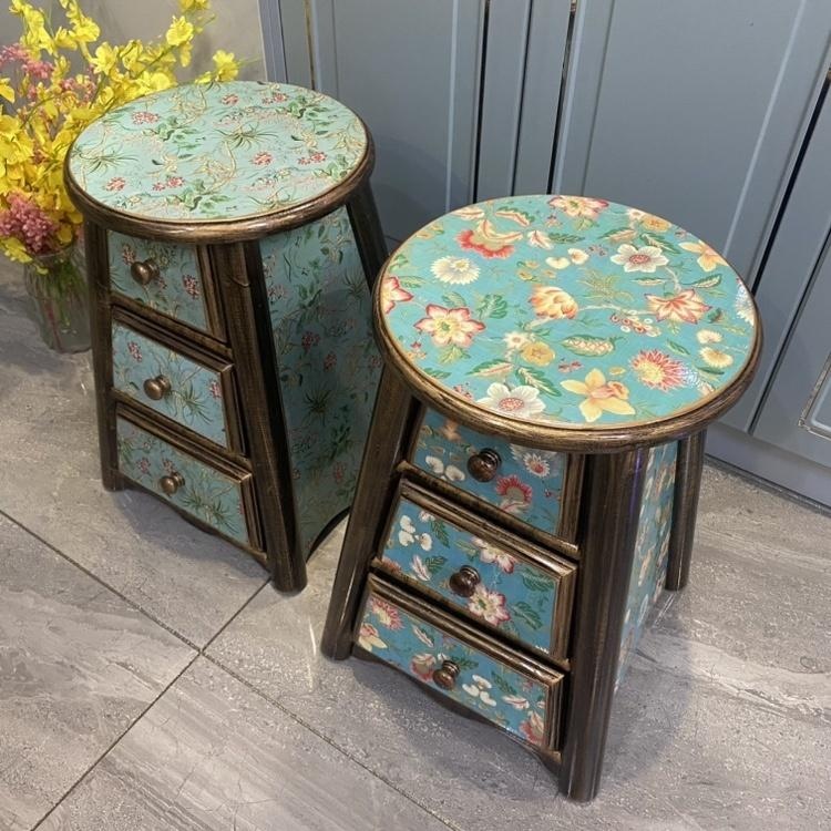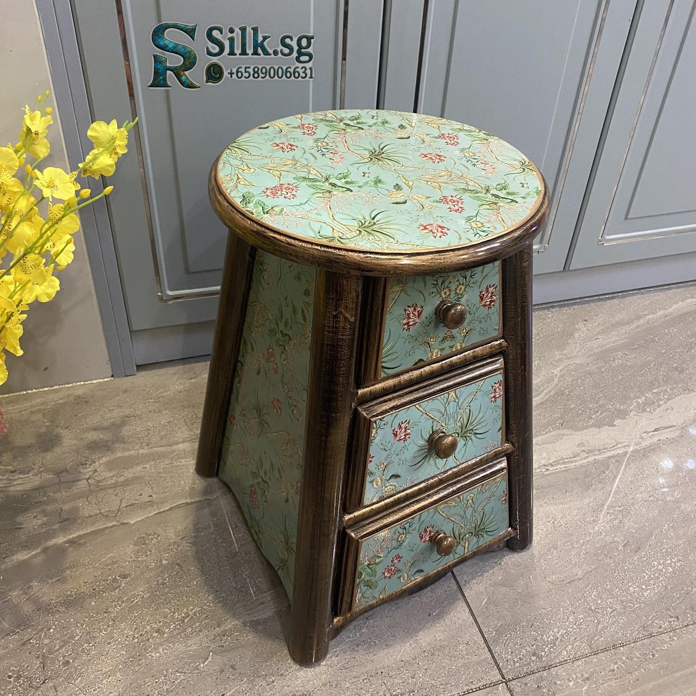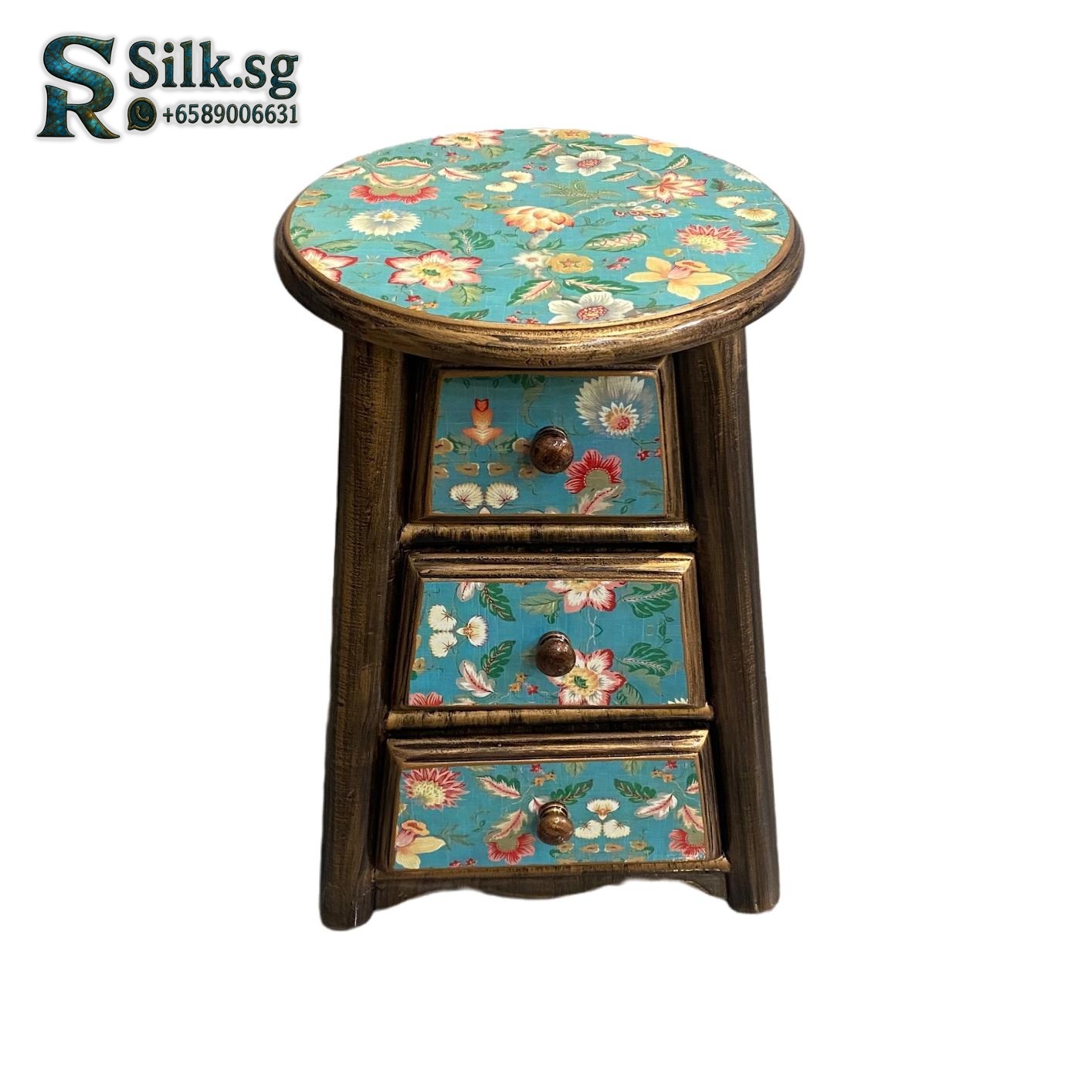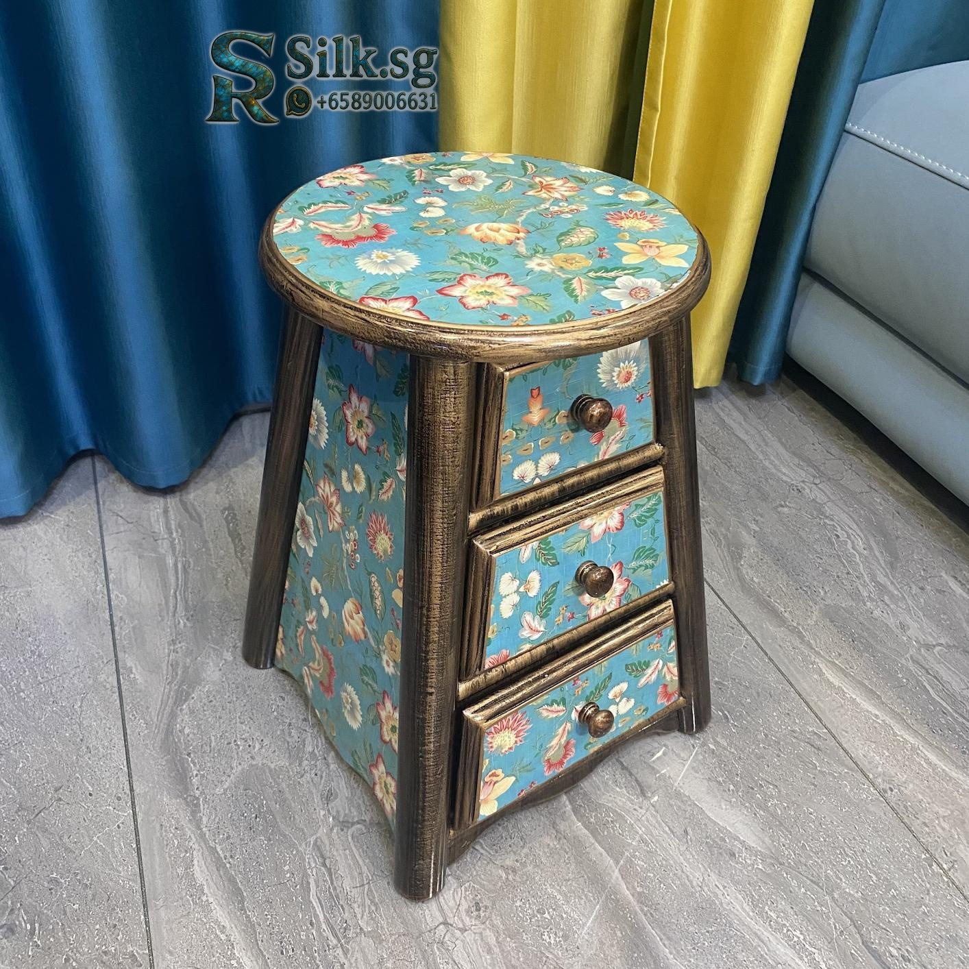 Other Home – European Wood Vanity Stool with Drawers, Floral Pattern M