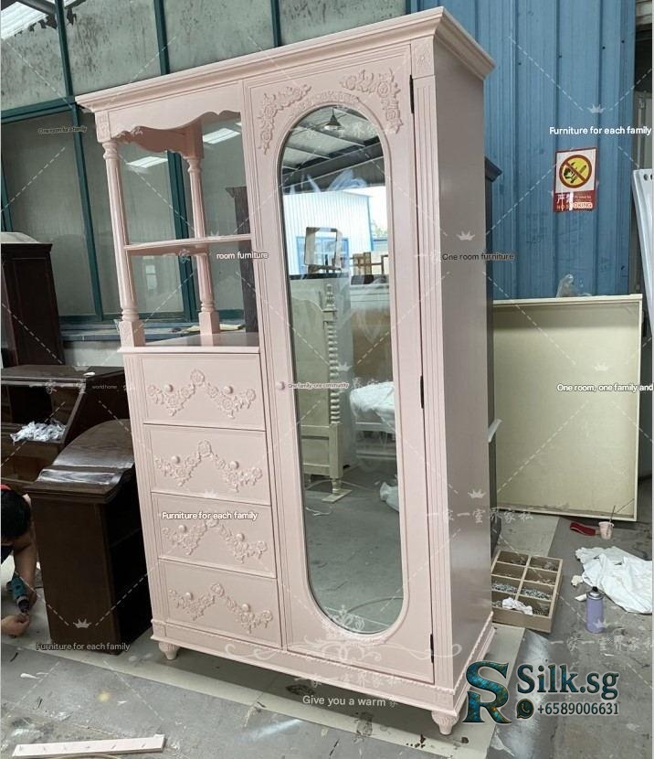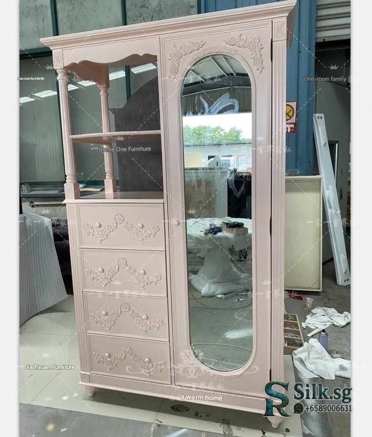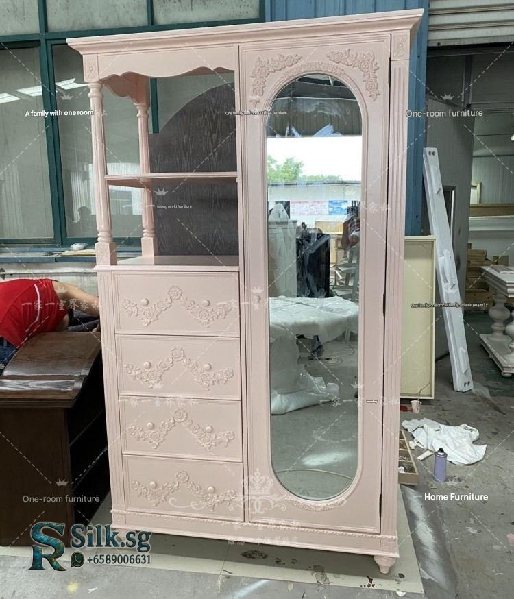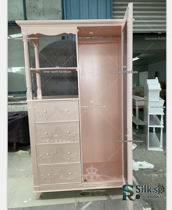 Honghu – French Carved Pink Wood Double Door Princess Wardrobe Customi