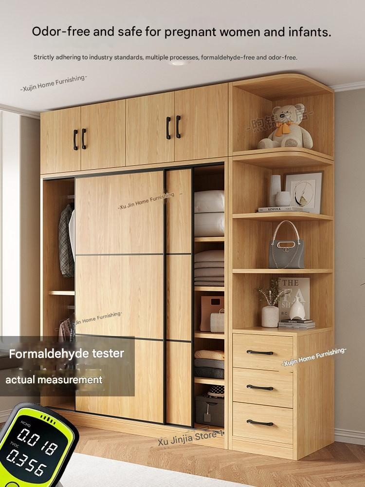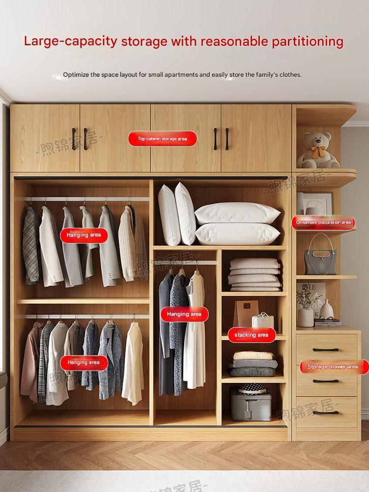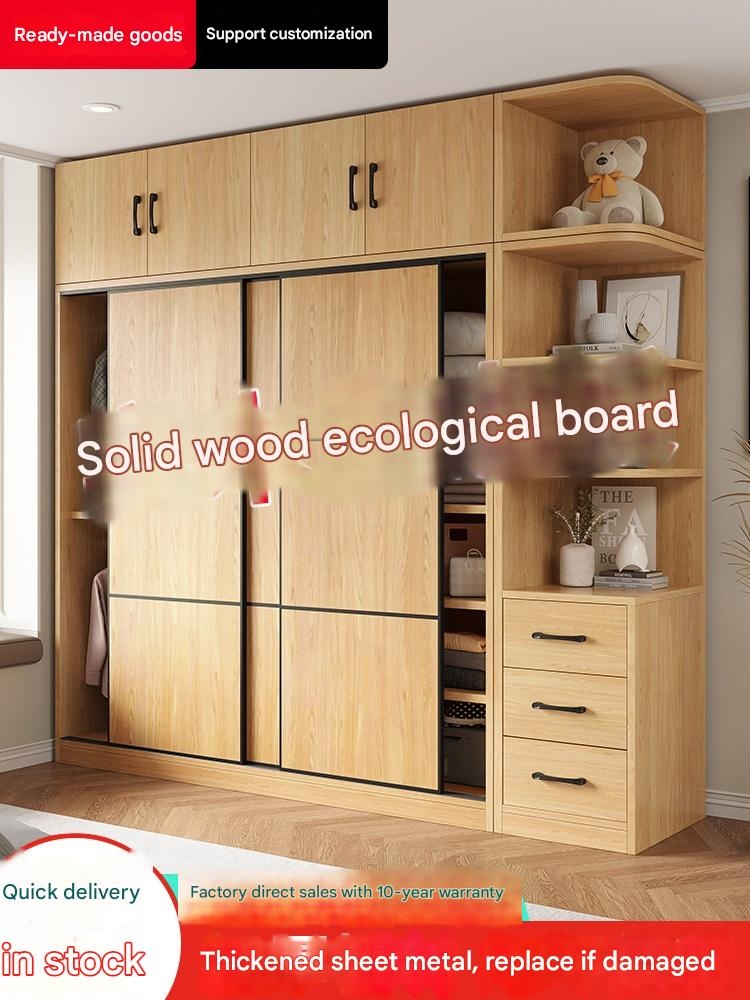 Solid Wood Wardrobe – Solid Wood Wardrobe for Home Bedroom Natural Wood Style Sliding Door S