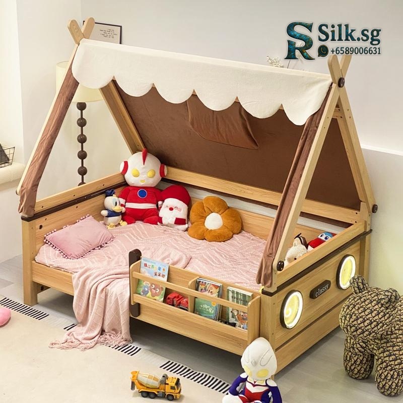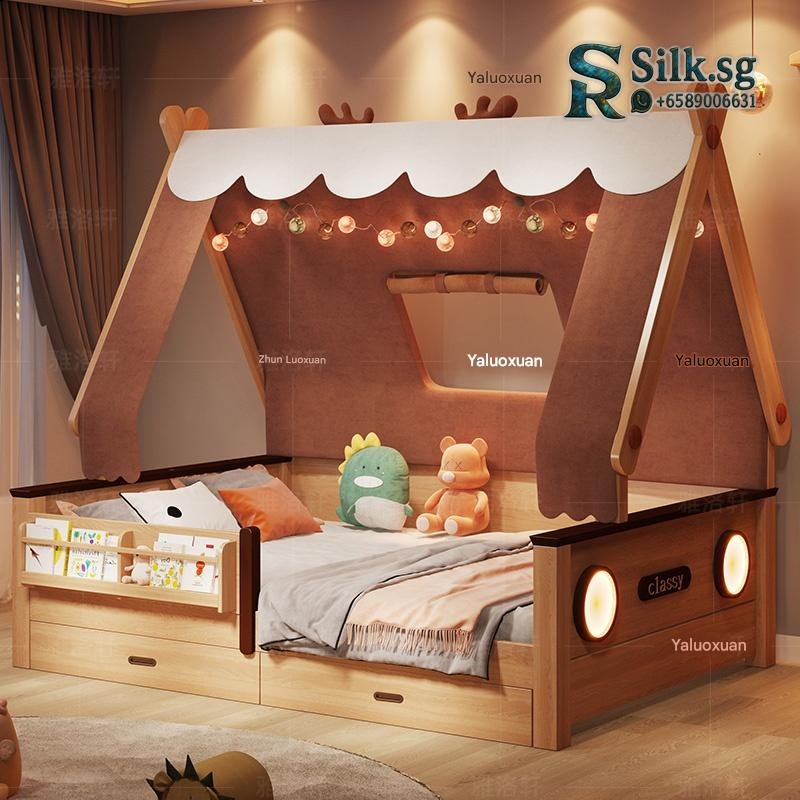Transform your childs room into a magical forest retreat with this solid wood treehouse bed. Its sturdy guardrail ensures safety while the playful tent roof sparks endless imagination, perfect for creating a cozy sleep and play sanctuary. Give your little adventurer a dream bedroom theyll love.