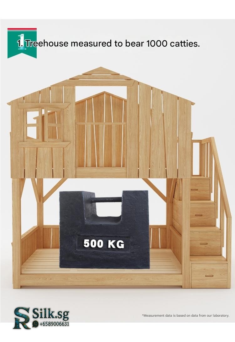 Othe – Kids Treehouse Bunk Bed with Slide & Storage Solid Wood Loft Be
