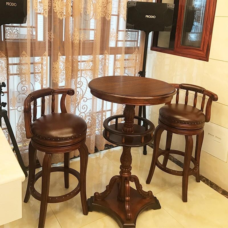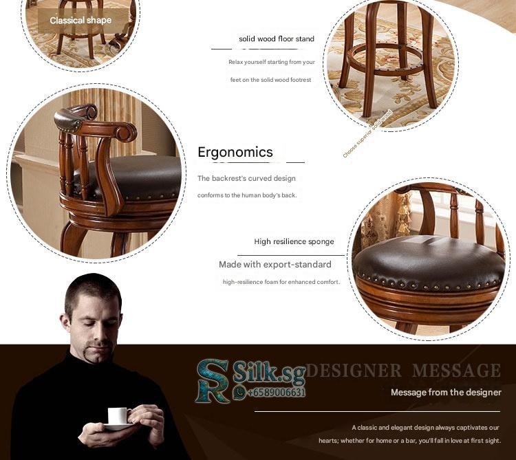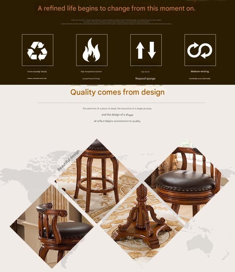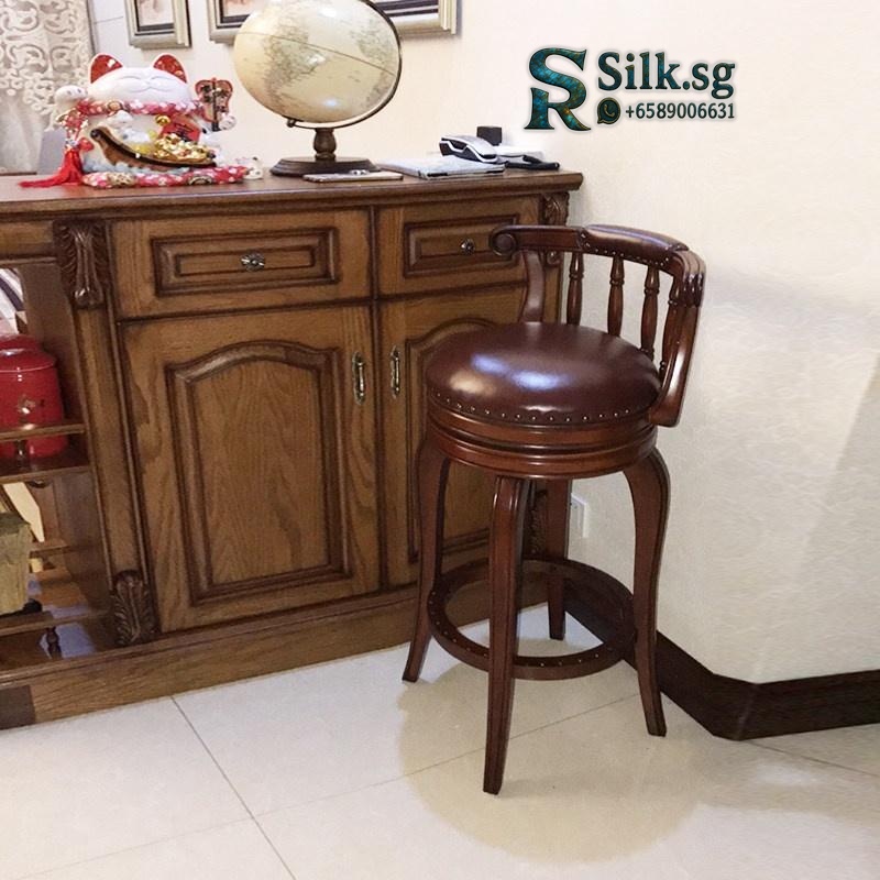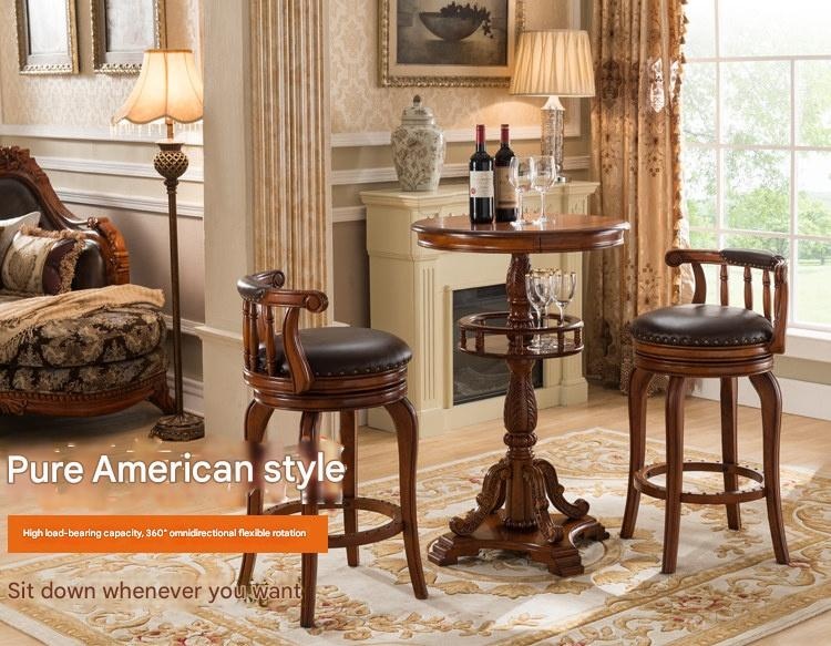 Elevate your home bar or kitchen island with this solid wood American style bar stool. Its comfortable backrest and smooth swivel seat offer both support and easy movement. Perfect for creating a cozy, social hub, this durable chair brings authentic charm to your daily moments.