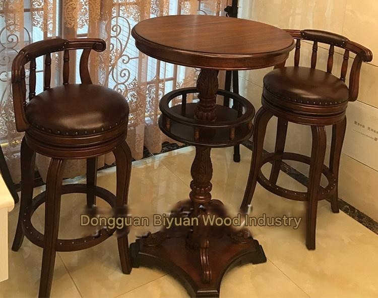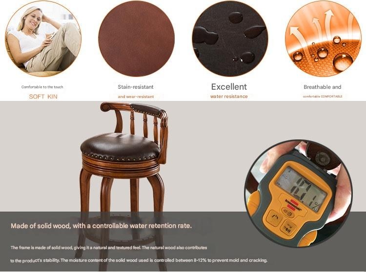 XHYFUNITURE – Solid Wood Swivel Bar Stool with Backrest, American Styl