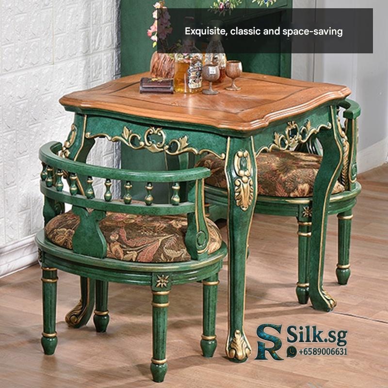 OakWood – French Country Retro Solid Wood Carved Dining Table & Chair