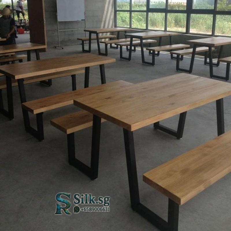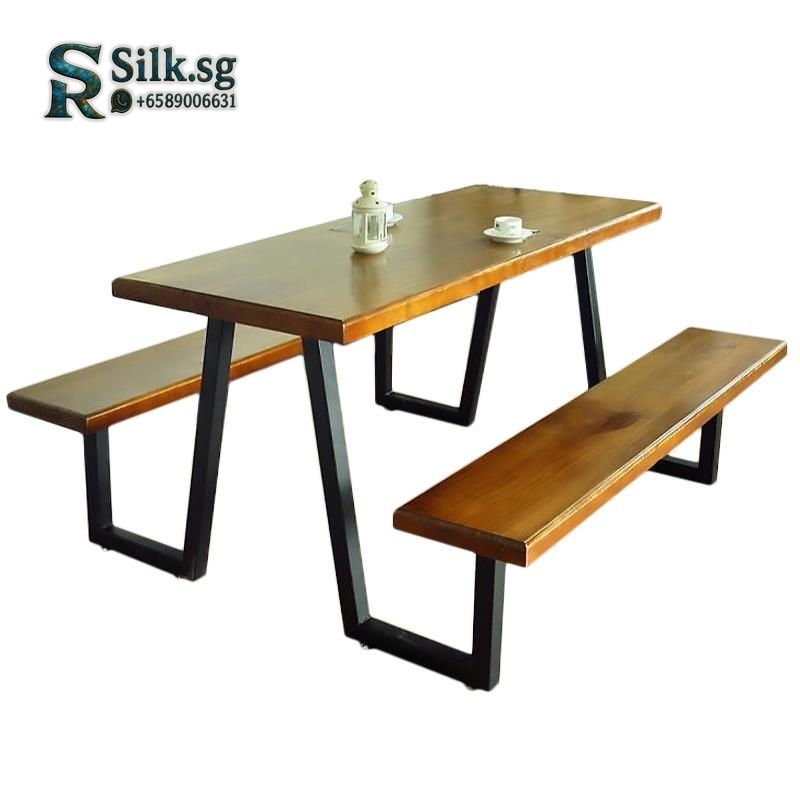 Crafted from solid pine wood, this American retro four-seater dining set offers durable charm and easy assembly. Perfect for cozy cafes or bustling restaurants, its customizable size ensures a perfect fit for your space. Bring timeless style and lasting quality to your dining area today.