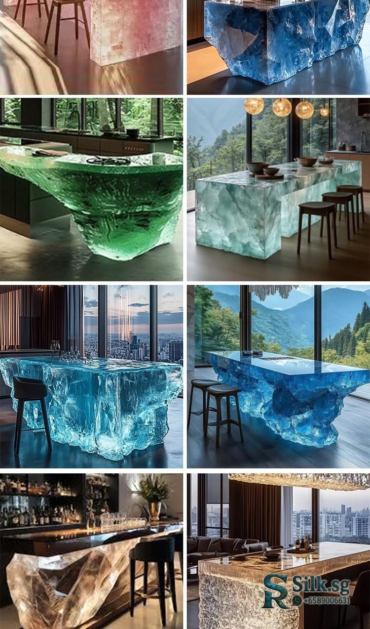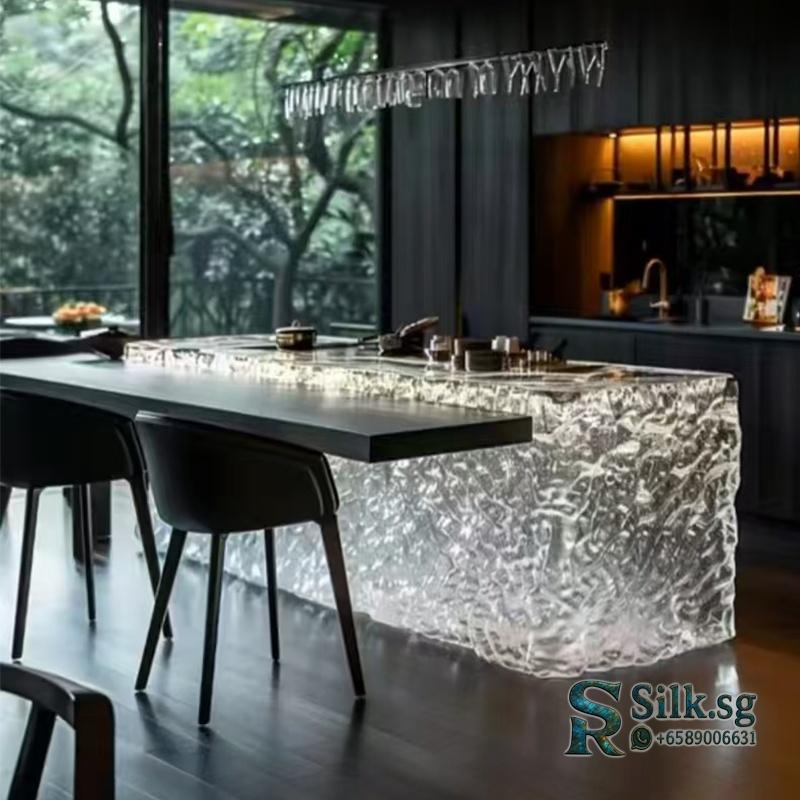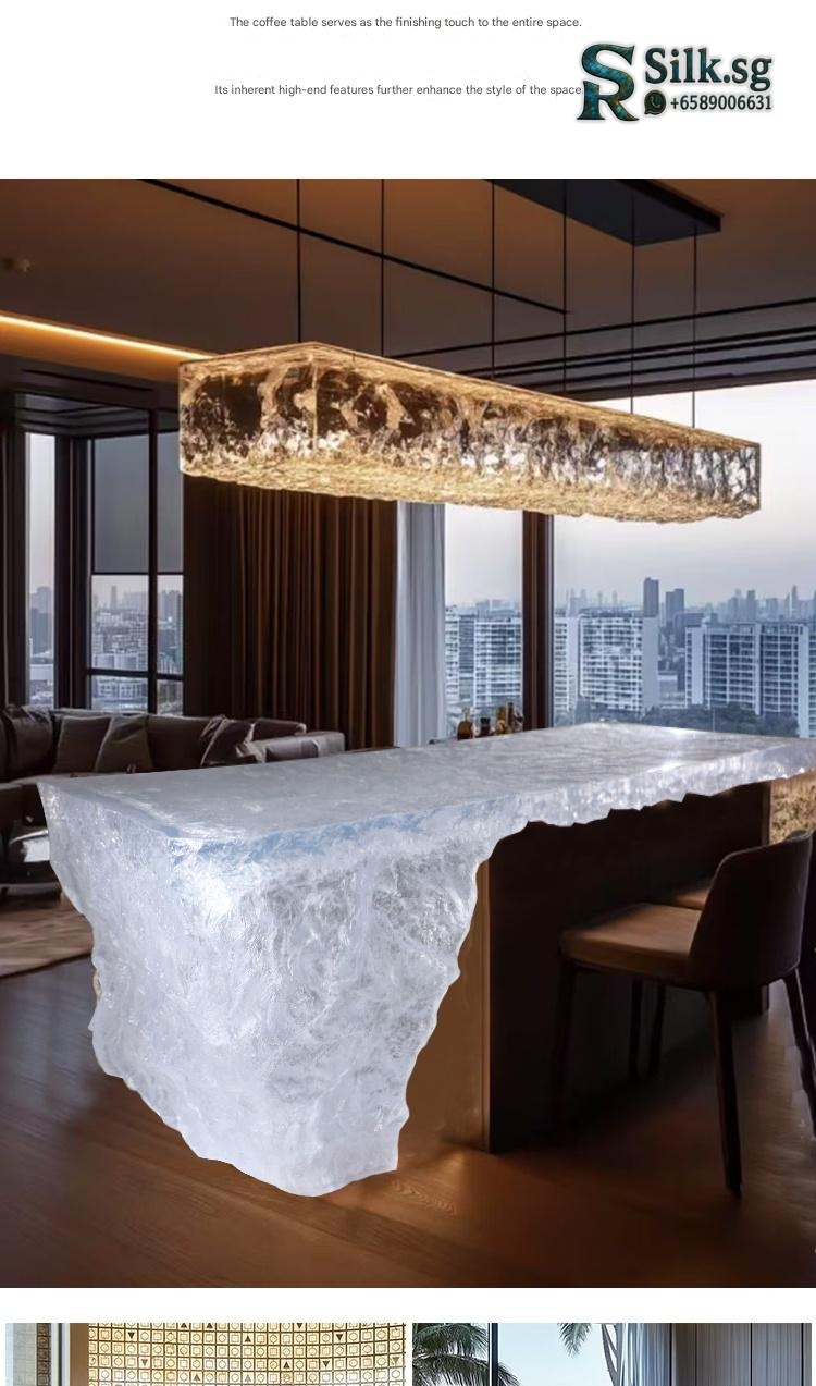 Premium Premium Luxury Transparent Resin Hotel Front Desk Restaurant Villa Kitchen Partition Glowing Crystal Glacier Island Dining Table for modern lifestyles. Designed for comfort, durability, and everyday use. {‘Style’: ‘Light Luxury Style’, ‘Socke