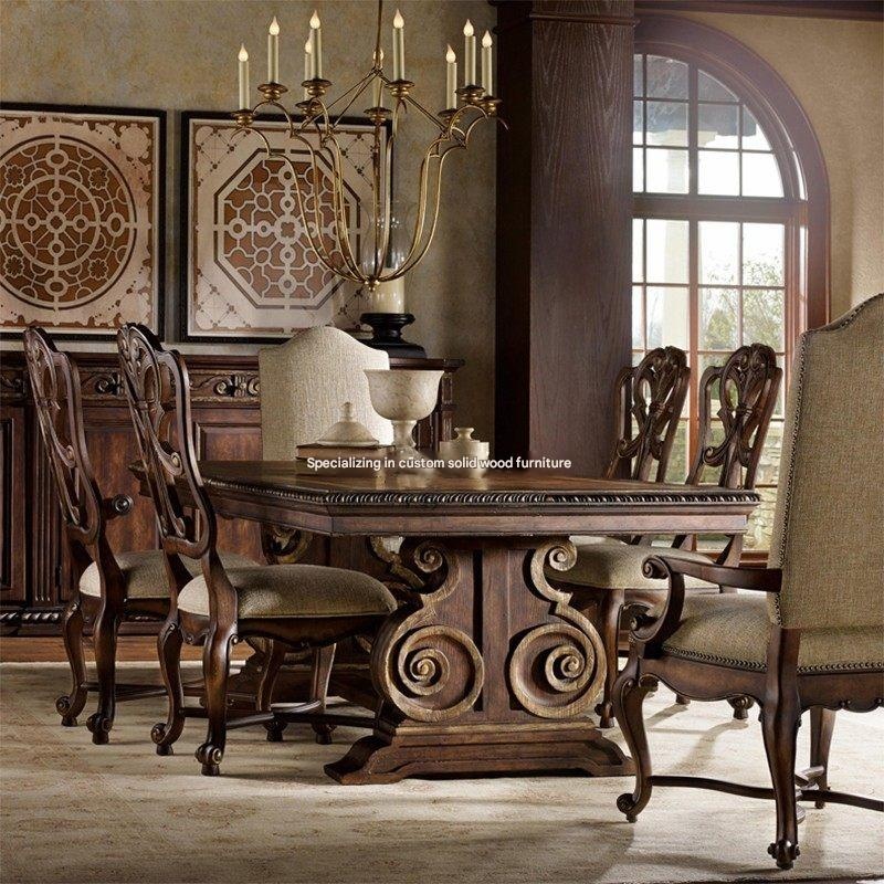 Crafted from solid oak with elegant French country carving, this American-style dining set brings timeless warmth to your home. Perfect for family gatherings, its customizable design ensures a perfect fit for your space. Create lasting memories around this beautiful, heirloom-quality table.