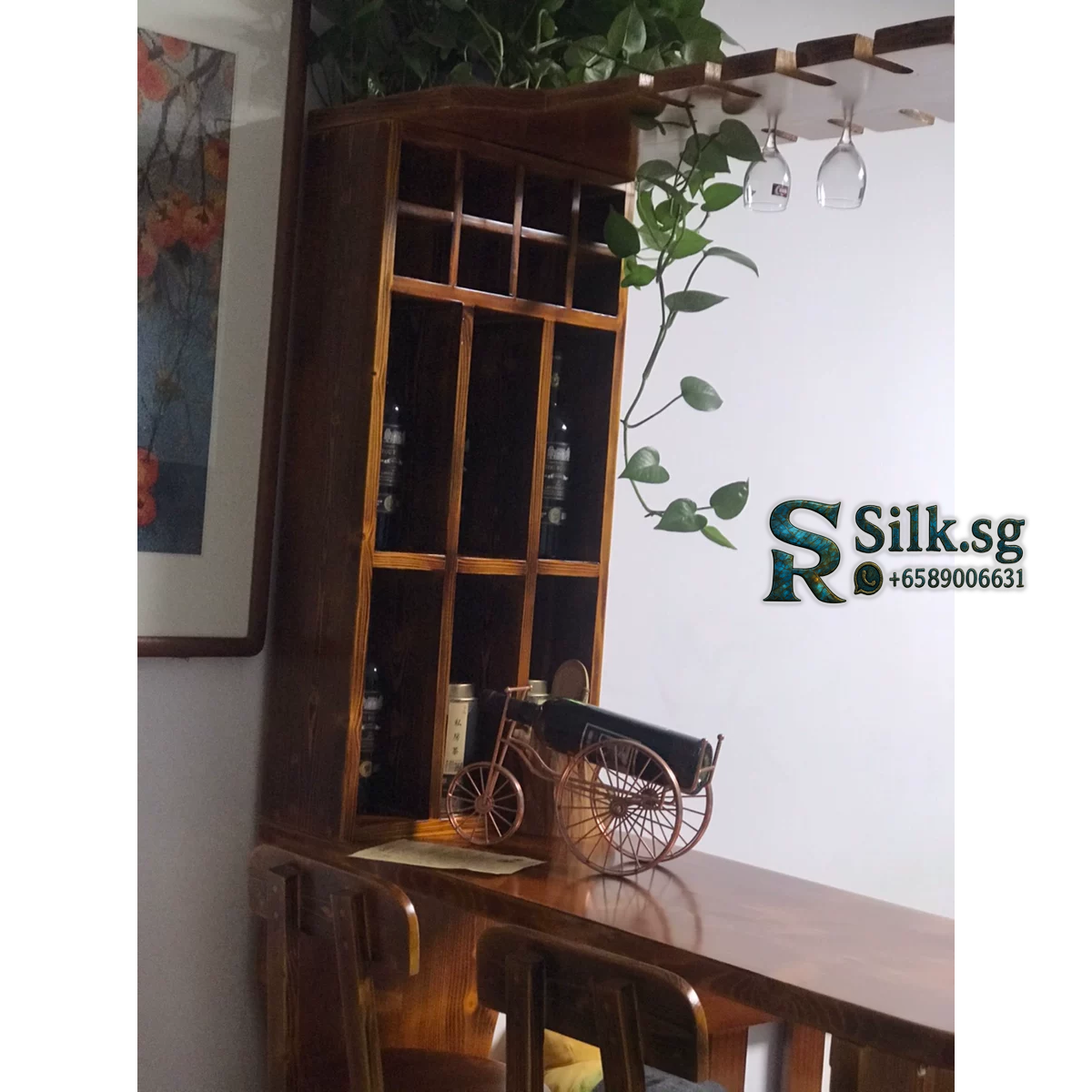 Be the first to review “Solid Wood Home Bar Table Set with Wine Cabinet & Stools – Modern Amer” Cancel reply