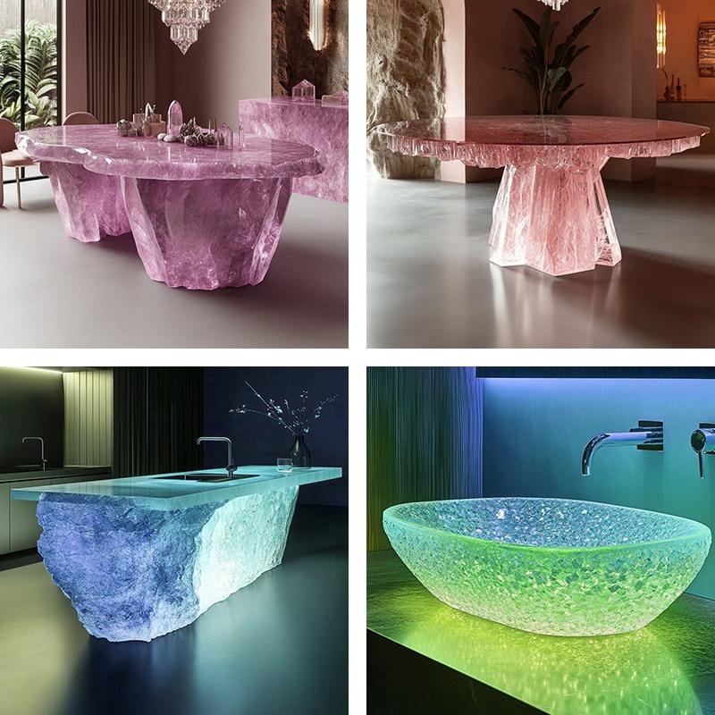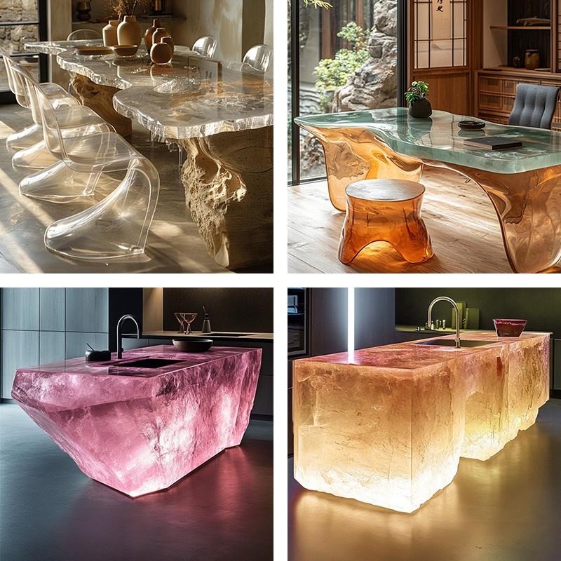 AI Concept – Modern Crystal Resin Dining Table, Customizable Minimalis