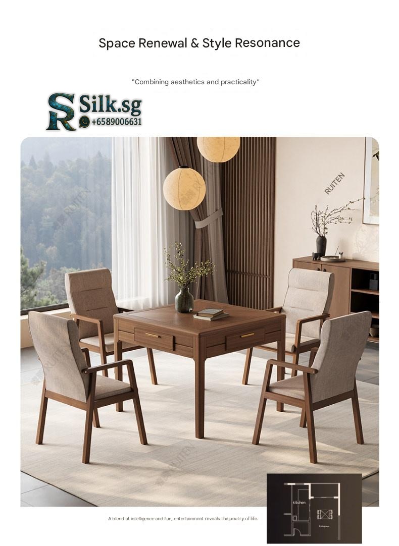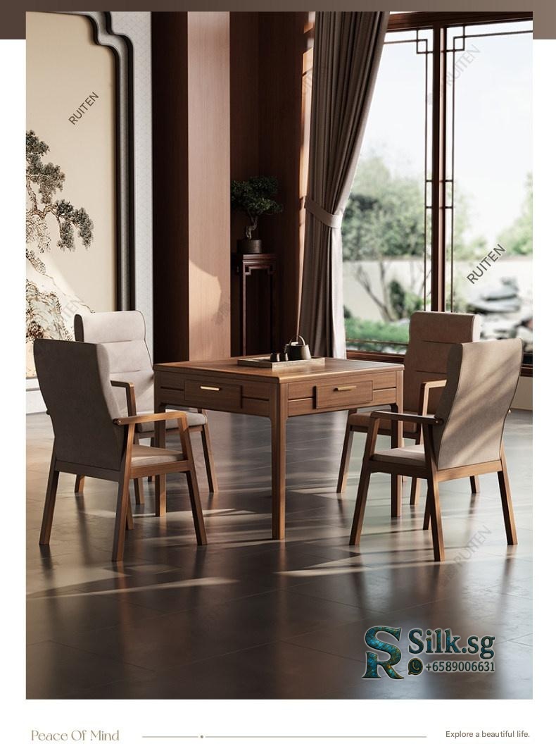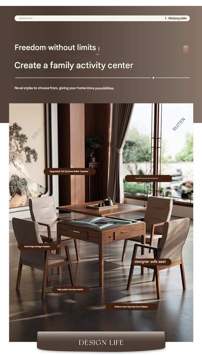 Ruiteng – New Chinese Style Solid Wood Silent Mahjong Table with Dinin
