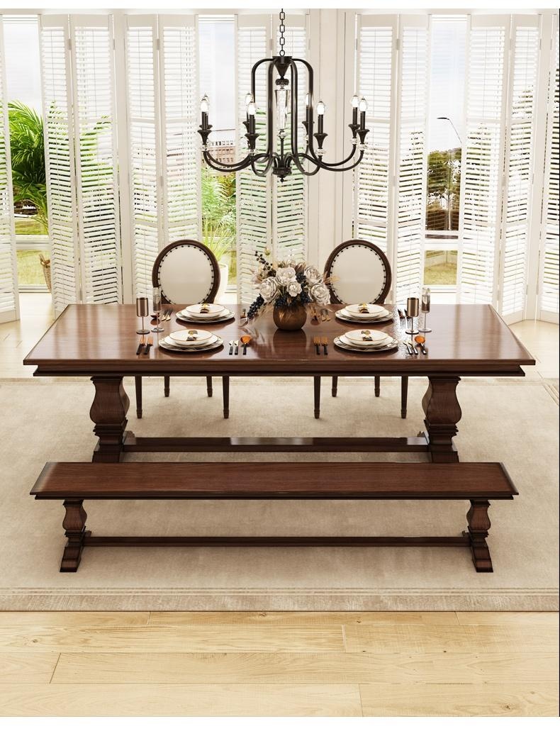 Premium American Light Luxury Solid Wood Dining Table French Restaurant Table and Chair Set European Style Original Wood Table Retro Dining Table Distressed Long Table for modern lifestyles. Designed for comfort, durability, and everyday use. {‘Style