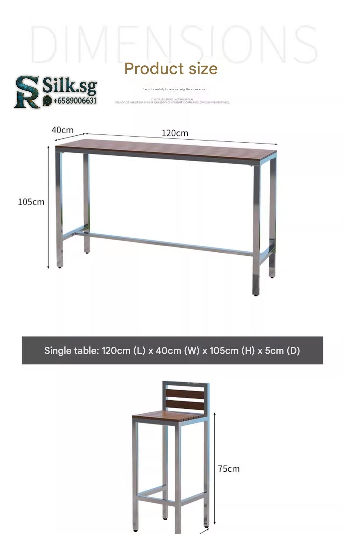 | Option | 100*40*105 Black, 100*40*105 Silver, 120*40*105 Black, 120*40*105 Silver, 120cm Two-Seater, 120cm Two-Seater All Black, 120cm Two-Seater All White, 120cm Two-Seater White Leg Wood Top, 140*40*105 Black, 140*40*105 Silver, 140cm Two-Seater, 140cm Two-Seater All Black, 140cm Two-Seater All White, 160*40*105 Black, 160*40*105 Silver, 160cm Two-Seater, 180*40*105 Black, 180*40*105 Silver, 180cm Three-Seater, 180cm Three-Seater All Black, 180cm Three-Seater All White, 200*40*105 Black, 200*40*105 Silver, 200cm Four-Seater, 200cm Four-Seater All Black, 200cm Four-Seater All White, 200cm Four-Seater White Leg Wood Top, 200cm Three-Seater, 200cm Three-Seater All Black, 200cm Three-Seater All White, Black Round Bar Stool Seat Height 75cm (Min. 2), Black Square Bar Stool Seat Height 75cm (Min. 2), Custom, Model A Black Chair 35*35*75 (Min. 2), Model A Silver Chair 35*35*75 (Min. 2), Model B Chair (Min. 2), White Bar Table: 100*40*105cm, White Bar Table: 120*40*105, White Bar Table: 140*40*105, White Bar Table: 160*40*105, White Bar Table: 180*40*105, White Bar Table: 200*40*105, White Round Bar Stool Seat Height 75cm (Min. 2), White Square Bar Stool Seat Height 75cm (Min. 2) |