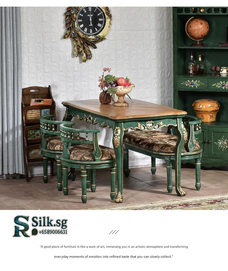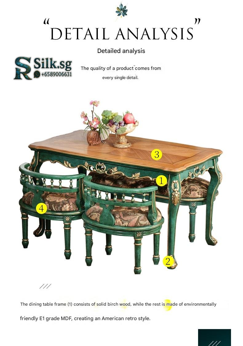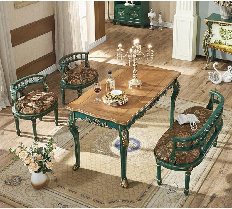 Bring timeless charm and durable solid wood construction to your small dining space. This European-style dining set features a beautiful distressed finish and comfortable seating for four. Perfect for cozy apartments or charming cafes, it creates a warm, inviting atmosphere for every meal.