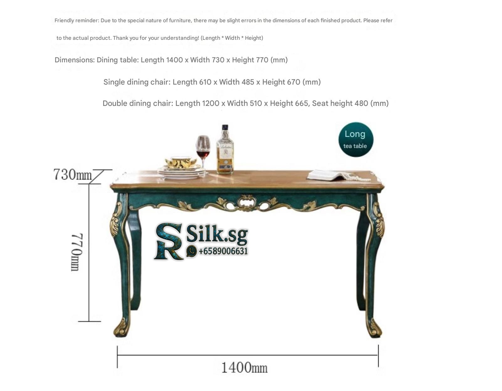 | Set | 0.73m Marble Square Table, 0.73m Small Square Table, 1.2m Long Table [Width 73cm], 1.4m Green Long Table*1 [Width 73cm], 1.4m Marble Square Table, 1.5m Long Table [Width 73cm], 1.6m Long Table [Width 80cm], 1m Small Dining Table [Width 73cm], Custom Color & Size, Dining 5-Piece Set [1.4m Long Table], Table*1 + Single Chair*2 + Double Chair*1 [1.4m Long Table] |
