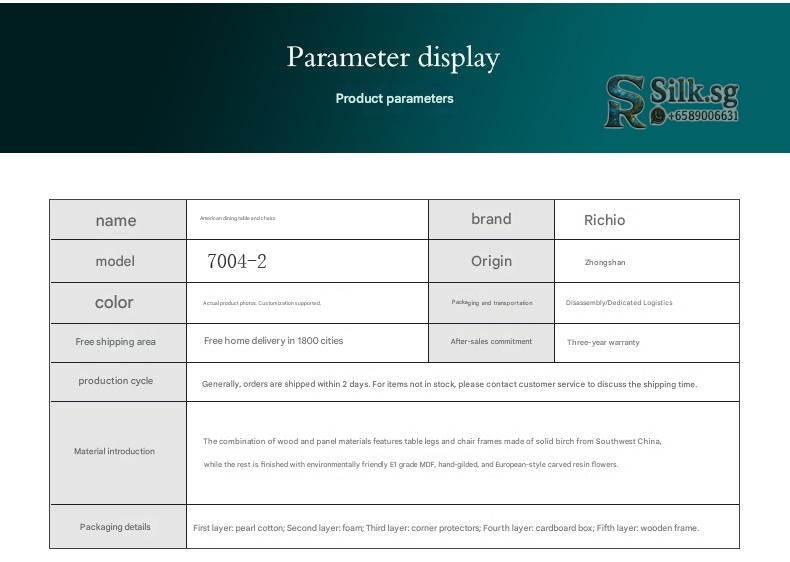 Xinshu – Solid Wood Dining Table Set, American Style Rectangular Table