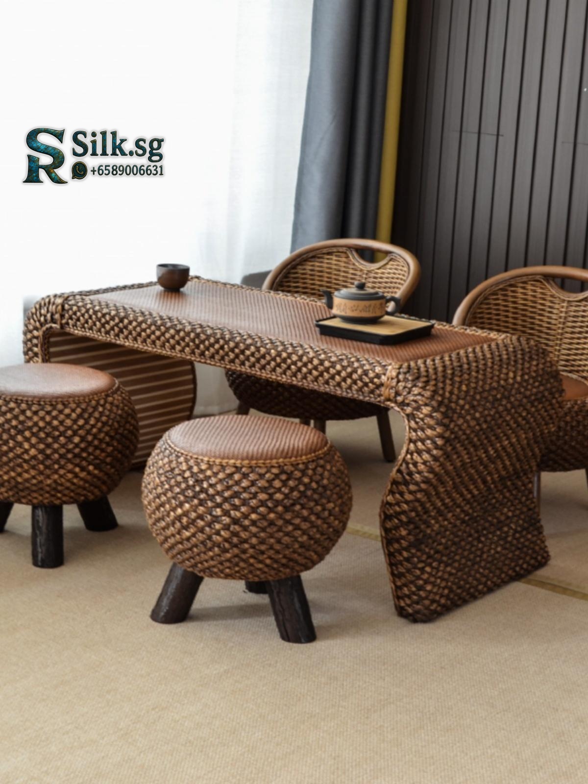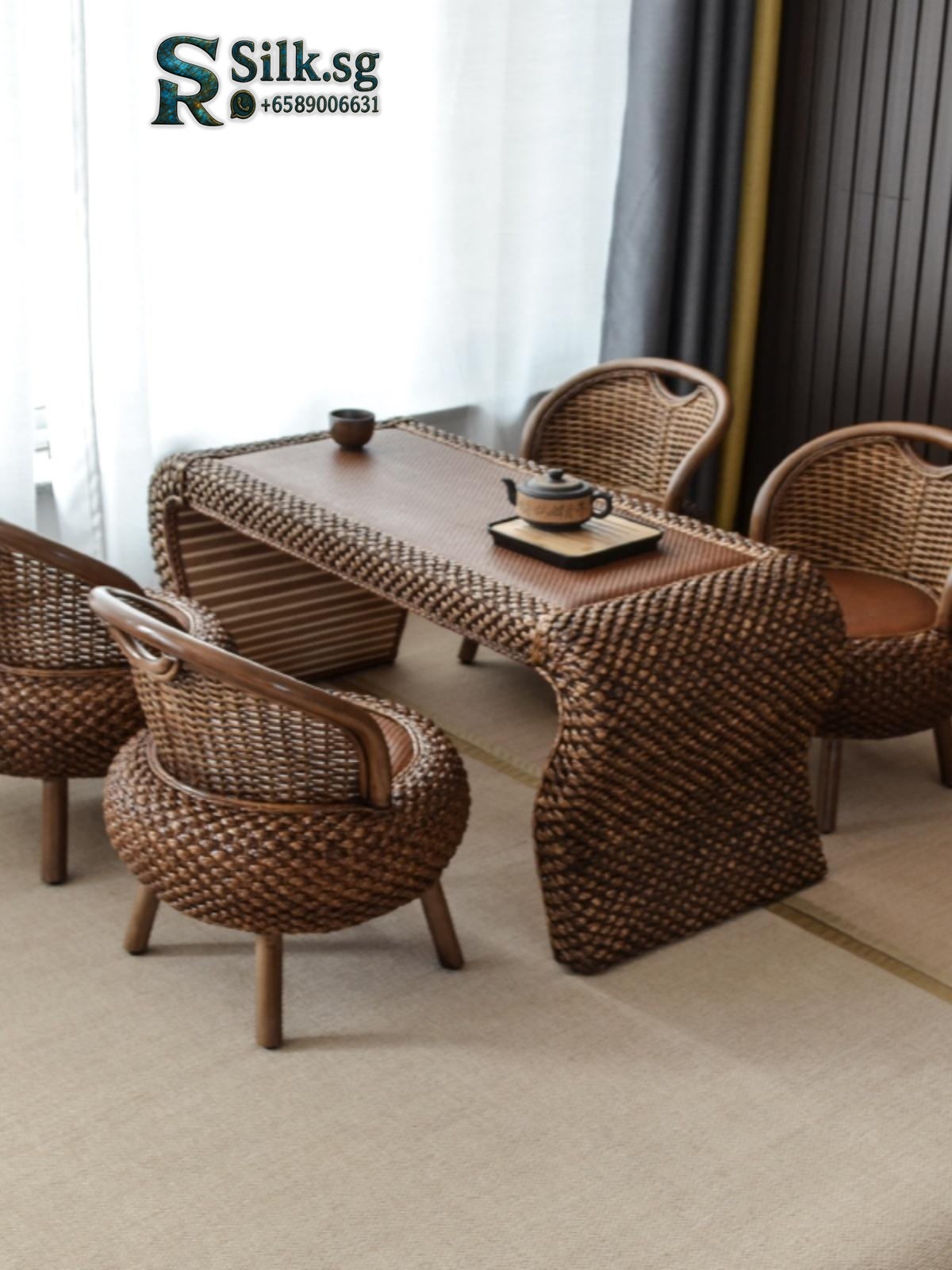 Transform your balcony into a serene tea sanctuary with this minimalist rattan table set. Its master-crafted design and movable function make it perfect for compact home leisure and authentic Gongfu tea sessions. Discover your moment of zen.