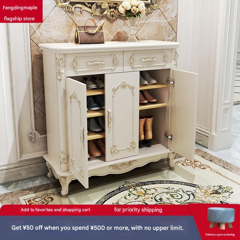 Dingbai – French Retro Solid Wood Entryway Cabinet with Sensor Light,