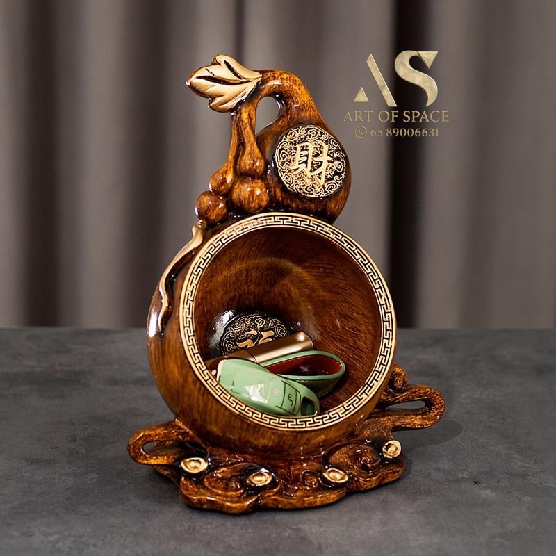 This charming retro-style gourd storage box keeps your entryway tidy while adding a touch of cultural elegance. Perfect for organizing keys and small essentials, its brushed finish makes it a beautiful living room ornament. Discover a unique way to blend function with fortune-inspired decor.