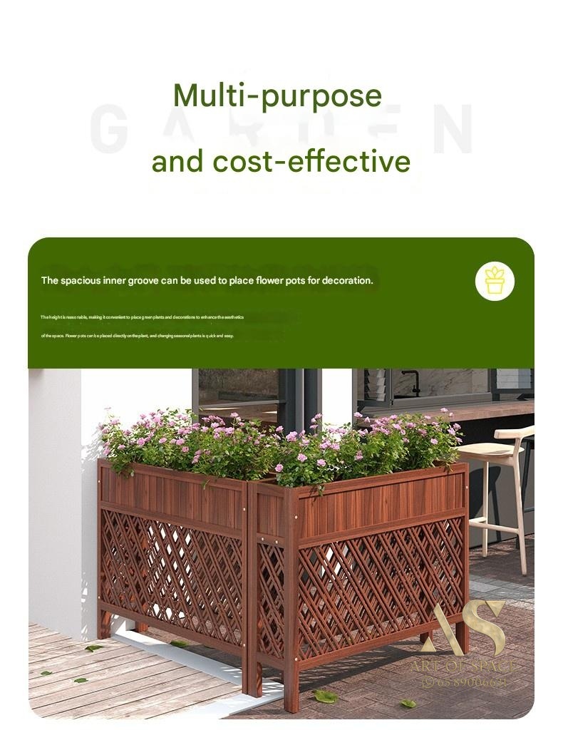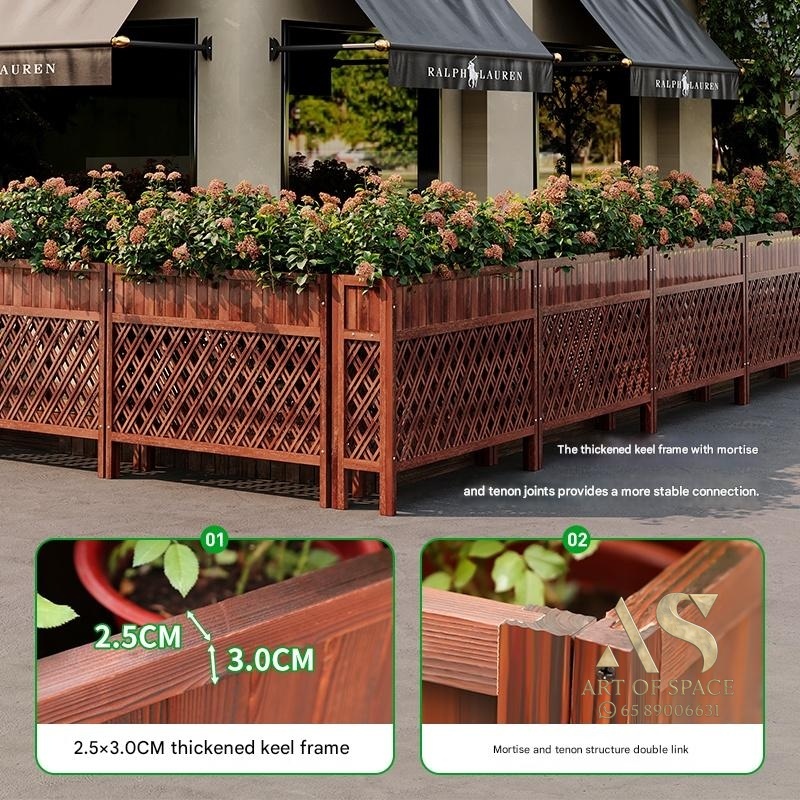 Elevate your outdoor space with this durable, anti-corrosion wood planter box. Its modern minimalist design and easy assembly make it perfect for creating a stunning garden display or a stylish restaurant partition. Transform your balcony or courtyard into a lush, organized retreat today.