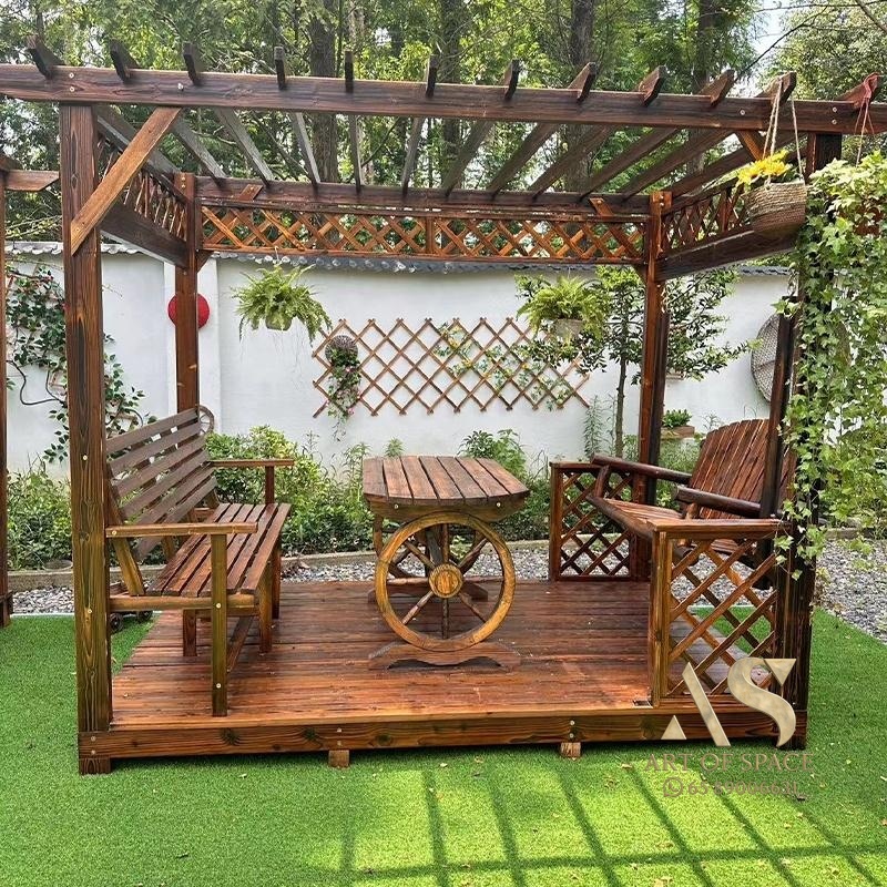 Hengmu – Rustic Solid Wood Garden Pavilion with Customizable Options