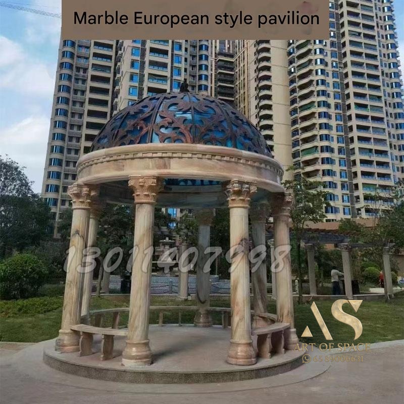 Quyang Stone Carving – European Style Gazebo with Marble Dome for Outd