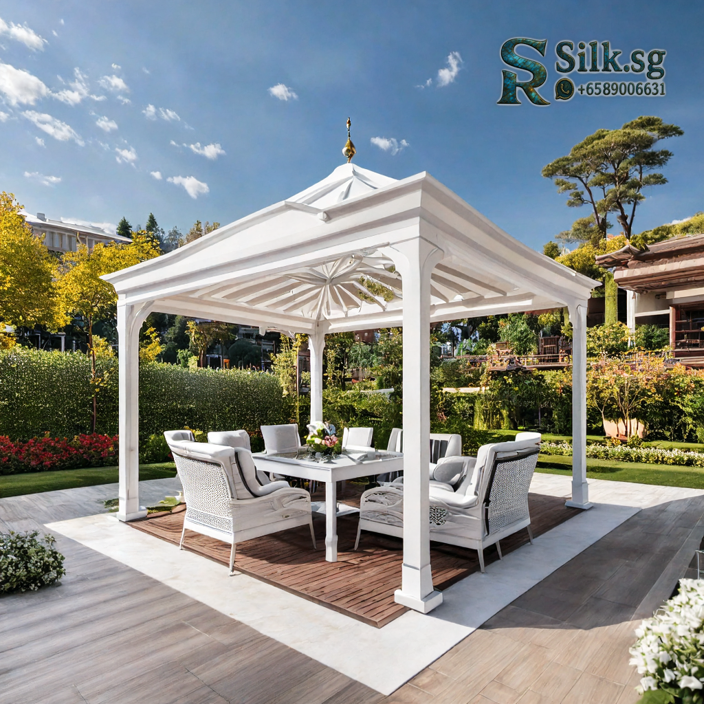 Enjoy elegant outdoor living with this European-style gazebo. Its masterful design offers generous shade and a customizable marble finish, perfect for creating a serene retreat in your garden or park. Discover your personal oasis of relaxation and style.