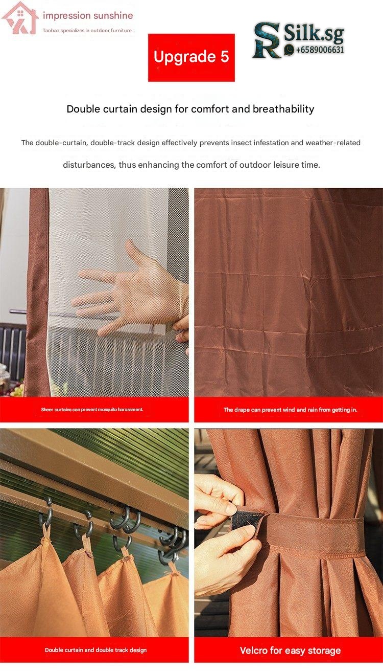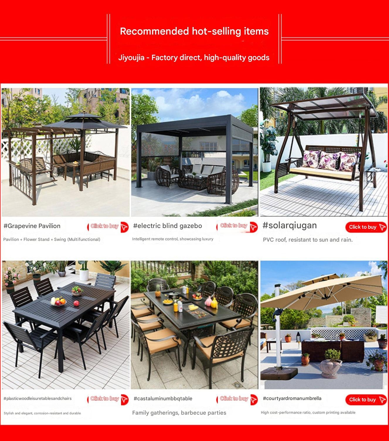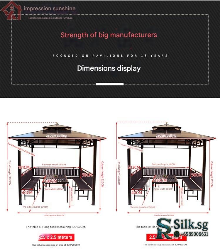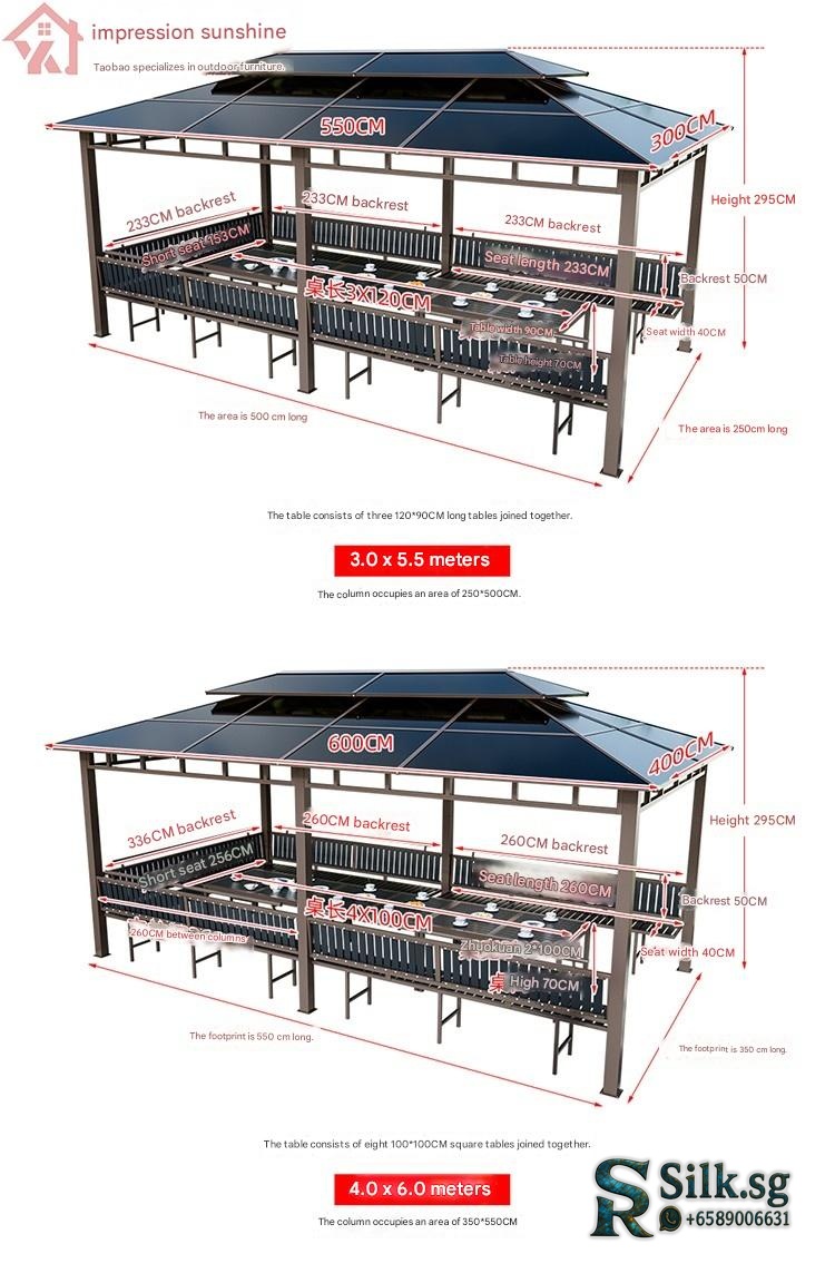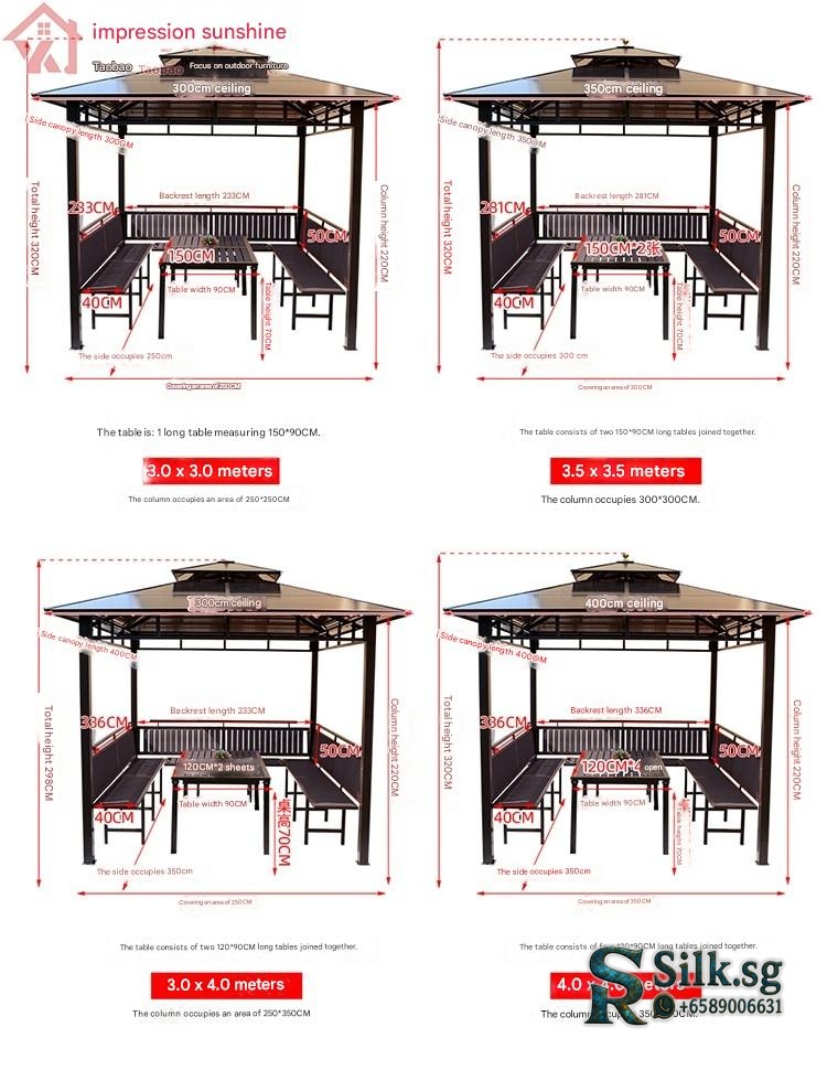 | Model | Extra Large Semi-Sunshine: 3-Side Seats + Table + Double Swing [8cm Posts], Limited Promotion: 3.5×4.5m Aluminum Four-Post Pavilion + Free Curtains & Screens [10cm Posts], [Eight-Post, 8cm Galvanized Steel Posts] 3.5×3.5m Fortune Pavilion, [Eight-Post, 8cm Galvanized Steel Posts] 3.5×3.5m Fortune Pavilion + 3-Side Seats + Table, [Eight-Post, 8cm Galvanized Steel Posts] 3.5×3.5m Fortune Pavilion + 3-Side Seats + Table + Double Curtains, [Eight-Post, 8cm Galvanized Steel Posts] 3.5×4.5m Fortune Pavilion, [Eight-Post, 8cm Galvanized Steel Posts] 3.5×4.5m Fortune Pavilion + 3-Side Seats + Table, [Eight-Post, 8cm Galvanized Steel Posts] 3x3m Fortune Pavilion, [Eight-Post, 8cm Galvanized Steel Posts] 3x3m Fortune Pavilion + 3-Side Seats + Table, [Eight-Post, 8cm Galvanized Steel Posts] 3x3m Fortune Pavilion + 3-Side Seats + Table + Double Curtains, [Eight-Post, 8cm Galvanized Steel Posts] 3x3m Fortune Pavilion + 3-Side Seats + Table + Floor, [Eight-Post, 8cm Galvanized Steel Posts] 3x3m Fortune Pavilion + Double Curtains, [Eight-Post, 8cm Galvanized Steel Posts] 3x4m Fortune Pavilion, [Eight-Post, 8cm Galvanized Steel Posts] 3x4m Fortune Pavilion + 3-Side Seats + Table, [Eight-Post, 8cm Galvanized Steel Posts] 3x4m Fortune Pavilion + 3-Side Seats + Table + Double Curtains, [Eight-Post, 8cm Galvanized Steel Posts] 3x6m Fortune Pavilion, [Eight-Post, 8cm Galvanized Steel Posts] 3x6m Fortune Pavilion + 5-Side Seats + Table, [Eight-Post, 8cm Galvanized Steel Posts] 4x4m Fortune Pavilion, [Eight-Post, 8cm Galvanized Steel Posts] 4x4m Fortune Pavilion + 3-Side Seats + Table, [Eight-Post, 8cm Galvanized Steel Posts] 4x6m Fortune Pavilion, [Eight-Post, 8cm Galvanized Steel Posts] 4x6m Fortune Pavilion + 5-Side Seats + Table, [Flagship, Upgraded 11cm Aluminum Posts] 3x3m Pavilion + 3-Side Seats + Table, [Galvanized Top, 10cm Posts] 4x6m Galvanized Pavilion, [Galvanized Top, 10cm Posts] 4x6m Galvanized Pavilion + 5-Side Seats + Table, [Galvanized Top, 8cm Posts] 2.5×2.5m Galvanized Pavilion, [Galvanized Top, 8cm Posts] 2.5×2.5m Galvanized Pavilion + 3-Side Seats + Table, [Galvanized Top, 8cm Posts] 2.5x3m Galvanized Pavilion, [Galvanized Top, 8cm Posts] 2.5x3m Galvanized Pavilion + 3-Side Seats + Table, [Galvanized Top, 8cm Posts] 3x3m Galvanized Pavilion, [Galvanized Top, 8cm Posts] 3x3m Galvanized Pavilion + 3-Side Seats + Table, [Galvanized Top, 8cm Posts] 3x4m Galvanized Pavilion, [Galvanized Top, 8cm Posts] 3x4m Galvanized Pavilion + 3-Side Seats + Table, [Galvanized Top, 8cm Posts] 4x4m Galvanized Pavilion, [Galvanized Top, 8cm Posts] 4x4m Galvanized Pavilion + 3-Side Seats + Table, [Standard, 8cm Posts] 2.5×2.5m Pavilion + 3-Side Seats + Table, [Standard, 8cm Posts] 2.5×2.5m Pavilion + 3-Side Seats + Table + Screens & Curtains, [Standard, 8cm Posts] 2.5×2.5m Pavilion + Screens & Curtains, [Standard, 8cm Posts] 2.5×2.5m Single Pavilion, [Standard, 8cm Posts] 2.5x3m Pavilion + 3-Side Seats + Table, [Standard, 8cm Posts] 2.5x3m Single Pavilion, [Standard, 8cm Posts] 3.5×3.5m Four-Post Pavilion + 3-Side Seats + Table, [Standard, 8cm Posts] 3.5×3.5m Single Pavilion, [Standard, 8cm Posts] 3x3m Four-Post Pavilion + 2-Side Seats + Table, [Standard, 8cm Posts] 3x3m Pavilion + 3-Side Seats + Table, [Standard, 8cm Posts] 3x3m Pavilion + 3-Side Seats + Table + Curtains & Screens, [Standard, 8cm Posts] 3x3m Pavilion + 3-Side Seats + Table + Floor, [Standard, 8cm Posts] 3x3m Single Pavilion, [Standard, 8cm Posts] 3x4m Four-Post Pavilion + 3-Side Seats + Table, [Standard, 8cm Posts] 3x4m Single Pavilion, [Upgraded, 10cm Posts] 2.5×2.5m Pavilion + 3-Side Seats + Table, [Upgraded, 10cm Posts] 2.5×2.5m Single Pavilion, [Upgraded, 10cm Posts] 2.5x3m Pavilion + 3-Side Seats + Table, [Upgraded, 10cm Posts] 2.5x3m Single Pavilion, [Upgraded, 10cm Posts] 3.5×3.5m Pavilion + 3-Side Seats + Table, [Upgraded, 10cm Posts] 3.5×3.5m Single Pavilion, [Upgraded, 10cm Posts] 3.5×4.5m Pavilion + 3-Side Seats + 3 Tables, [Upgraded, 10cm Posts] 3.5×4.5m Single Pavilion, [Upgraded, 10cm Posts] 3.5x6m Single Pavilion, [Upgraded, 10cm Posts] 3x3m Pavilion + 2-Side Seats + Table, [Upgraded, 10cm Posts] 3x3m Pavilion + 3-Side Seats + Table, [Upgraded, 10cm Posts] 3x3m Pavilion + 3-Side Seats + Table + 1.5m Aluminum BBQ Table, [Upgraded, 10cm Posts] 3x3m Pavilion + 3-Side Seats + Table + Screens & Curtains, [Upgraded, 10cm Posts] 3x3m Single Pavilion, [Upgraded, 10cm Posts] 3x4m Pavilion + 3-Side Seats + 2 Tables, [Upgraded, 10cm Posts] 3x4m Single Pavilion, [Upgraded, 10cm Posts] 3×5.5m Pavilion + 5-Side Seats + 3 Tables, [Upgraded, 10cm Posts] 3×5.5m Single Pavilion, [Upgraded, 10cm Posts] 3x6m Pavilion + 5-Side Seats + 4 Tables, [Upgraded, 10cm Posts] 3x6m Single Pavilion, [Upgraded, 10cm Posts] 4.5×4.5m Single Pavilion, [Upgraded, 10cm Posts] 4x4m Pavilion + 3-Side Seats + 4 Tables, [Upgraded, 10cm Posts] 4x4m Pavilion + 3-Side Seats + 4 Tables + Curtains & Screens, [Upgraded, 10cm Posts] 4x4m Single Pavilion, [Upgraded, 10cm Posts] 4x6m Pavilion + 5-Side Seats + 8 Tables, [Upgraded, 10cm Posts] 4x6m Single Pavilion, [Upgraded, 10cm Posts] 5x5m Four-Post Pavilion + 3-Side Seats + 12 Tables, [Upgraded, 10cm Posts] 5x5m Single Pavilion |