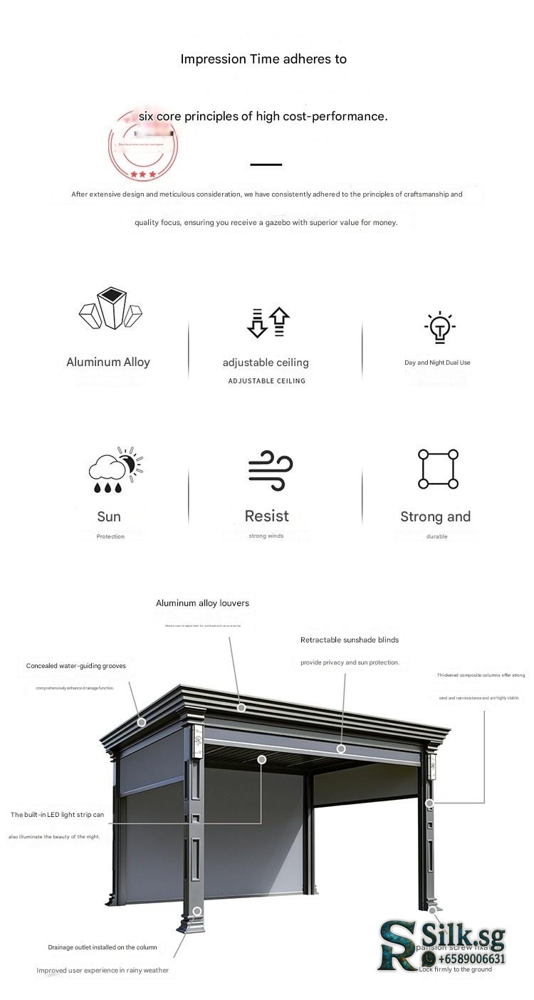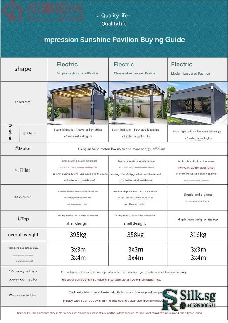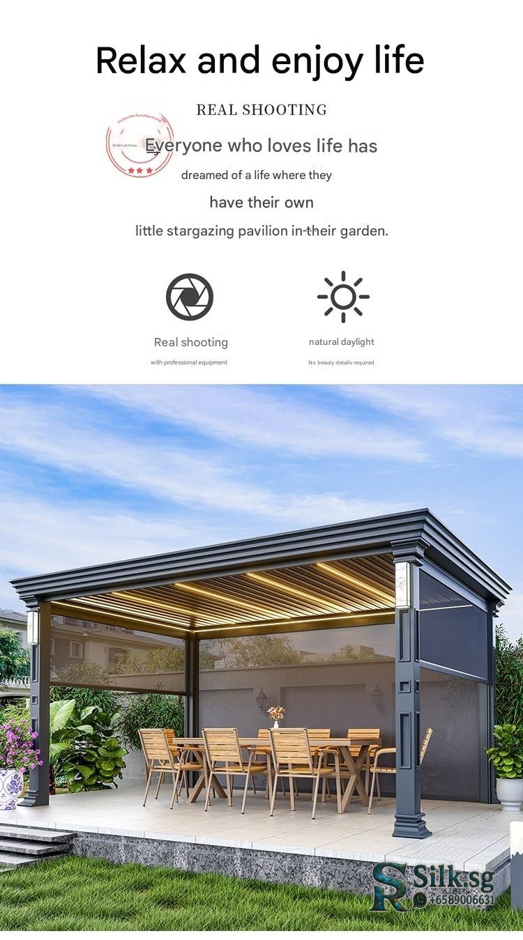 Premium Outdoor Aluminum Pavilion Chinese Courtyard Design Villa Shutter Pavilion Electric Model Sunroom Awning Customization for modern lifestyles. Designed for comfort, durability, and everyday use. {‘Brand’: ‘Impression Sunshine’, ‘Model’: ‘A21’,