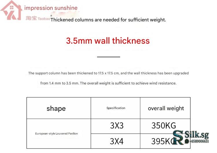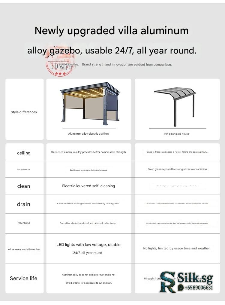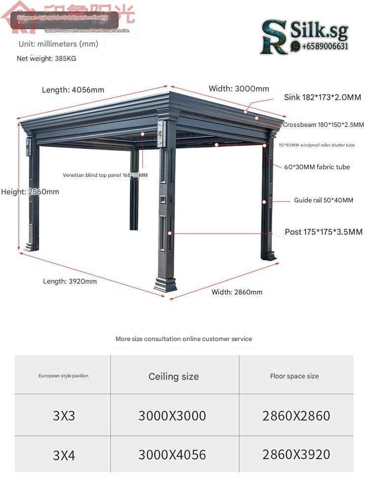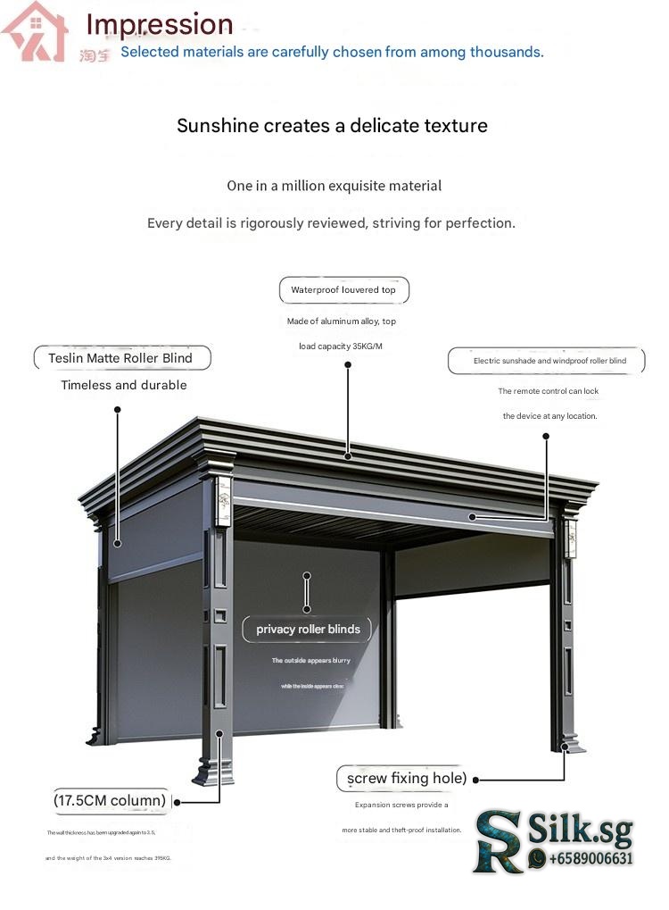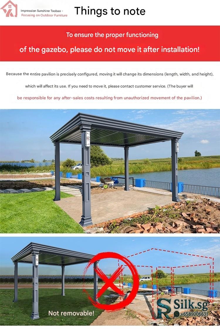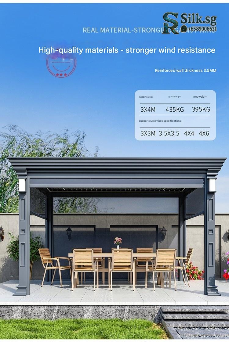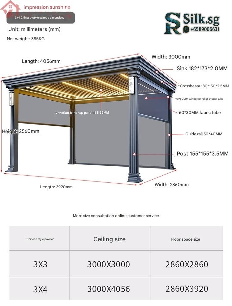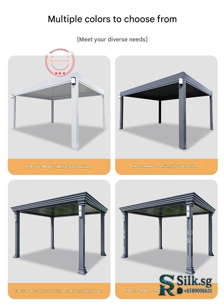 | Model | Custom Size/Three Colors Free Customization – Contact Customer Service, Store Recommended: New Chinese Pavilion 4.2m x 3.25m + Large Screen + 4 Small Screens, 【Coffee Brown】Chinese Pavilion 3x3m with Light – with 4 Electric Roller Blinds, 【Coffee Brown】Chinese Pavilion 3x4m with Light – with 4 Electric Roller Blinds, 【Coffee Brown】European Pavilion 3x3m with Light – with 4 Electric Roller Blinds, 【Coffee Brown】European Pavilion 3x4m with Light – with 4 Electric Roller Blinds, 【Deluxe Edition】Chinese Fence Pavilion 3x3m with Light (No Roller Blinds), 【Deluxe Edition】Chinese Fence Pavilion 3x3m with Light – with 4 Electric Roller Blinds, 【Deluxe Edition】Chinese Fence Pavilion 3x4m with Light (No Roller Blinds), 【Deluxe Edition】Chinese Fence Pavilion 3x4m with Light – with 4 Electric Roller Blinds, 【Deluxe Edition】European Fence Pavilion 3x3m with Light (No Roller Blinds), 【Deluxe Edition】European Fence Pavilion 3x3m with Light – with 4 Electric Roller Blinds, 【Deluxe Edition】European Fence Pavilion 3x4m with Light (No Roller Blinds), 【Deluxe Edition】European Fence Pavilion 3x4m with Light – with 4 Electric Roller Blinds, 【Flagship Edition】Chinese Pavilion 3.5×3.5m with Light (with Fence + Four-Sided Blinds), 【Flagship Edition】Chinese Pavilion 3.5×3.5m with Light (with Fence) – No Roller Blinds, 【Flagship Edition】Chinese Pavilion 3.5×4.5m with Light (with Fence + Four-Sided Blinds), 【Flagship Edition】Chinese Pavilion 3.5×4.5m with Light (with Fence) – No Roller Blinds, 【Flagship Edition】European Pavilion 3.5×3.5m with Light (with Fence + Four-Sided Blinds), 【Flagship Edition】European Pavilion 3.5×3.5m with Light (with Fence) – No Roller Blinds, 【Flagship Edition】European Pavilion 3.5×4.5m with Light (with Fence + Four-Sided Blinds), 【Flagship Edition】European Pavilion 3.5×4.5m with Light (with Fence) – No Roller Blinds, 【Premium Gray】Chinese Pavilion 3x3m with Light + Fan Light – with 4 Electric Roller Blinds, 【Premium Gray】Chinese Pavilion 3x3m with Light – No Roller Blinds, 【Premium Gray】Chinese Pavilion 3x3m with Light – with 3 Electric Roller Blinds, 【Premium Gray】Chinese Pavilion 3x3m with Light – with 4 Electric Roller Blinds, 【Premium Gray】Chinese Pavilion 3x4m with Light – No Roller Blinds, 【Premium Gray】Chinese Pavilion 3x4m with Light – with 4 Electric Roller Blinds, 【Premium Gray】Chinese Pavilion 4x4m with Light + Fan Light – with 4 Electric Roller Blinds, 【Premium Gray】Chinese Pavilion 4x4m with Light – with 4 Electric Roller Blinds, 【Premium Gray】Chinese Pavilion 4x5m with Light – No Roller Blinds, 【Premium Gray】Chinese Pavilion 4x5m with Light – with 3 Electric Roller Blinds, 【Premium Gray】Chinese Pavilion 4x5m with Light – with 4 Electric Roller Blinds, 【Premium Gray】European Pavilion 3x3m with Light + Fan Light – with 4 Electric Roller Blinds, 【Premium Gray】European Pavilion 3x3m with Light – No Roller Blinds, 【Premium Gray】European Pavilion 3x3m with Light – with 3 Electric Roller Blinds, 【Premium Gray】European Pavilion 3x3m with Light – with 4 Electric Roller Blinds, 【Premium Gray】European Pavilion 3x4m with Light – No Roller Blinds, 【Premium Gray】European Pavilion 3x4m with Light – with 4 Electric Roller Blinds, 【Premium Gray】European Pavilion 4x4m with Light + Fan Light – with 4 Electric Roller Blinds, 【Premium Gray】European Pavilion 4x4m with Light – with 4 Electric Roller Blinds, 【Premium Gray】European Pavilion 4x5m with Light – No Roller Blinds, 【Premium Gray】European Pavilion 4x5m with Light – with 3 Electric Roller Blinds, 【Premium Gray】European Pavilion 4x5m with Light – with 4 Electric Roller Blinds, 【Premium Gray】Modern Pavilion 3x3m with Light – No Roller Blinds, 【Premium Gray】Modern Pavilion 3x3m with Light – with 3 Electric Roller Blinds, 【Premium Gray】Modern Pavilion 3x3m with Light – with 4 Electric Roller Blinds, 【Premium Gray】Modern Pavilion 3x4m with Light – No Roller Blinds, 【Premium Gray】Modern Pavilion 3x4m with Light – with 4 Electric Roller Blinds, 【Premium Gray】Modern Pavilion 4x4m with Light – with 4 Electric Roller Blinds |