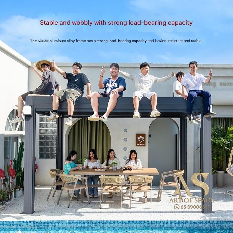 | Model | Custom size/color – contact customer service, Enhanced: 3×2.5m no light no curtain, column: 10cm, Enhanced: 3×2.5m with light + 3 manual side curtains, column: 14cm, Enhanced: 3×2.5m with light + 4 manual side curtains, column: 14cm, Enhanced: 3×2.5m with light no curtain, column: 10cm, Enhanced: 3x3m no light no curtain, column: 10cm, Enhanced: 3x3m with light + 3 manual side curtains, column: 14cm, Enhanced: 3x3m with light + 4 fabric sliding doors, column: 14cm, Enhanced: 3x3m with light + 4 glass sliding doors, column: 14cm, Enhanced: 3x3m with light + 4 louver sliding doors, column: 14cm, Enhanced: 3x3m with light + 4 manual side curtains, column: 14cm, Enhanced: 3x3m with light no curtain, column: 10cm, Enhanced: 3x4m no light no curtain, column: 10cm, Enhanced: 3x4m with light + 3 manual side curtains, column: 14cm, Enhanced: 3x4m with light + 4 fabric sliding doors, column: 14cm, Enhanced: 3x4m with light + 4 glass sliding doors, column: 14cm, Enhanced: 3x4m with light + 4 louver sliding doors, column: 14cm, Enhanced: 3x4m with light + 4 manual side curtains, column: 14cm, Enhanced: 3x4m with light no curtain, column: 10cm, Enhanced: 3x6m no light no curtain, column: 10cm, Enhanced: 3x6m with light + 6 electric/remote side curtains, column: 14cm, Enhanced: 3x6m with light + 6 manual side curtains, column: 14cm, Enhanced: 3x6m with light no curtain, column: 10cm, Enhanced: 3x8m no light no curtain, column: 10cm, Enhanced: 3x8m with light + 6 electric/remote side curtains, column: 14cm, Enhanced: 3x8m with light + 6 manual side curtains, column: 14cm, Enhanced: 3x8m with light no curtain, column: 10cm, Flagship: 3.6x4m with light (electric louvers, electric 4-side windproof roller blinds), column: 19cm, Flagship: 3x3m with light (electric louvers, electric 4-side windproof roller blinds), column: 19cm, Flagship: 3x3m with light (manual louvers, electric 3-side windproof roller blinds), column: 19cm, Flagship: 3x3m with light (manual louvers, electric 4-side windproof roller blinds), column: 19cm, Flagship: 3x3m with light (manual louvers, manual 3-side windproof roller blinds), column: 19cm, Flagship: 3x3m with light (manual louvers, manual 4-side windproof roller blinds), column: 19cm, Flagship: 3x4m with light (electric louvers, electric 4-side windproof roller blinds), column: 19cm, Flagship: 3x4m with light (manual louvers, electric 3-side windproof roller blinds), column: 19cm, Flagship: 3x4m with light (manual louvers, electric 4-side windproof roller blinds), column: 19cm, Flagship: 3x4m with light (manual louvers, manual 3-side windproof roller blinds), column: 19cm, Flagship: 3x4m with light (manual louvers, manual 4-side windproof roller blinds), column: 19cm, Flagship: 4x4m with light (electric louvers, electric 4-side windproof roller blinds), column: 19cm, Flagship: 4x4m with light (manual louvers, electric 3-side windproof roller blinds), column: 19cm, Flagship: 4x4m with light (manual louvers, electric 4-side windproof roller blinds), column: 19cm, Flagship: 4x4m with light (manual louvers, manual 3-side windproof roller blinds), column: 19cm, Flagship: 4x4m with light (manual louvers, manual 4-side windproof roller blinds), column: 19cm, Flagship: 4x5m with light (electric louvers, electric 4-side windproof roller blinds), column: 19cm, Flagship: 4x5m with light (manual louvers, manual 4-side windproof roller blinds), column: 19cm, Luxury Dual Electric: 3x3m with light (electric louvers, electric 4-side windproof roller blinds), column: 17.5cm, Luxury Dual Electric: 3x4m with light (electric louvers, electric 4-side windproof roller blinds), column: 17.5cm, Luxury Dual Electric: 4x4m with light (electric louvers, electric 4-side windproof roller blinds), column: 17.5cm, Luxury: 3×2.5m no light no curtain (manual louvers), column: 12cm, Luxury: 3x3m no light no curtain (manual louvers), column: 12cm, Luxury: 3x3m with light (manual louvers, electric 3-side windproof roller blinds), column: 17.5cm, Luxury: 3x3m with light (manual louvers, electric 4-side windproof roller blinds), column: 17.5cm, Luxury: 3x3m with light (manual louvers, manual 3-side windproof roller blinds), column: 17.5cm, Luxury: 3x3m with light (manual louvers, manual 4-side windproof roller blinds), column: 17.5cm, Luxury: 3x3m with light no curtain (manual louvers), column: 12cm, Luxury: 3x4m no light no curtain (manual louvers), column: 12cm, Luxury: 3x4m with light (manual louvers, electric 3-side windproof roller blinds), column: 17.5cm, Luxury: 3x4m with light (manual louvers, electric 4-side windproof roller blinds), column: 17.5cm, Luxury: 3x4m with light (manual louvers, manual 3-side windproof roller blinds), column: 17.5cm, Luxury: 3x4m with light (manual louvers, manual 4-side windproof roller blinds), column: 17.5cm, Luxury: 3x4m with light no curtain (manual louvers), column: 12cm, Luxury: 3x6m with light (manual louvers, electric 6-side windproof roller blinds), column: 17.5cm, Luxury: 3x6m with light (manual louvers, manual 6-side windproof roller blinds), column: 17.5cm, Luxury: 3x6m with light no curtain (manual louvers), column: 12cm, Luxury: 3x8m with light (manual louvers, electric 6-side windproof roller blinds), column: 17.5cm, Luxury: 3x8m with light (manual louvers, manual 6-side windproof roller blinds), column: 17.5cm, Luxury: 4x4m with light (manual louvers, electric 3-side windproof roller blinds), column: 17.5cm, Luxury: 4x4m with light (manual louvers, electric 4-side windproof roller blinds), column: 17.5cm, Luxury: 4x4m with light (manual louvers, manual 3-side windproof roller blinds), column: 17.5cm, Luxury: 4x4m with light (manual louvers, manual 4-side windproof roller blinds), column: 17.5cm, Luxury: 4x4m with light no curtain (manual louvers), column: 12cm |