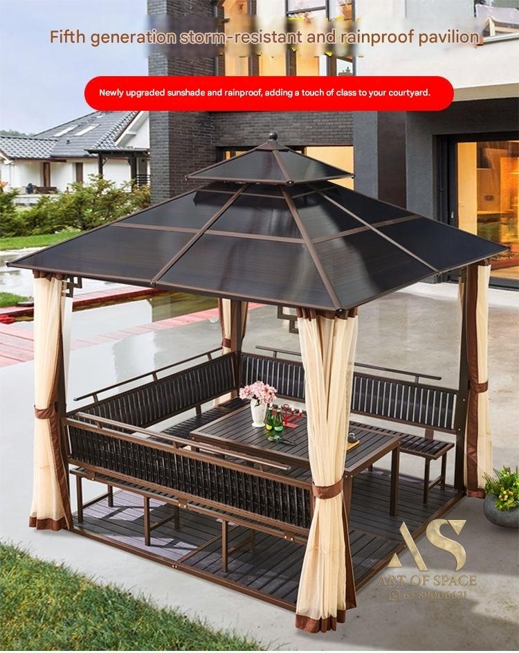 Create your perfect outdoor retreat with this elegant European-style pavilion. Its durable frame and sunlight panels offer stylish shade and shelter, perfect for garden gatherings or a quiet tea corner. Transform your space into a charming villa courtyard and start enjoying the outdoors in comfort.