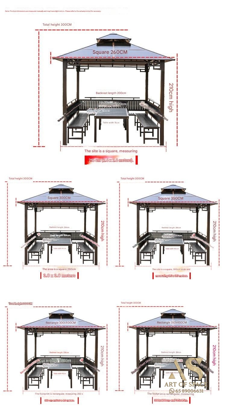 | Set | 2.6×2.6m-Four Pillar Pavilion, 2.6×2.6m-Four Pillar Pavilion+3-Sided Seat Board+Table, 2.6×2.6m-Four Pillar Pavilion+3-Sided Seat Board+Table+Floor, 2.6×2.6m-Four Pillar Pavilion+Enclosure Curtain, 2.6×2.6m-Four Pillar Pavilion+Mesh Curtain, 3.0×3.0m-Four Pillar Pavilion, 3.0×3.0m-Four Pillar Pavilion+3-Sided Seat Board+Table, 3.0×3.0m-Four Pillar Pavilion+3-Sided Seat Board+Table+Floor, 3.0×3.0m-Four Pillar Pavilion+Enclosure Curtain, 3.0×3.0m-Four Pillar Pavilion+Mesh Curtain, 3.0×4.0m-Four Pillar Pavilion, 3.0×4.0m-Four Pillar Pavilion+3-Sided Seat Board+Table, 3.0×4.0m-Four Pillar Pavilion+3-Sided Seat Board+Table+Floor, 3.0×4.0m-Four Pillar Pavilion+Enclosure Curtain, 3.0×4.0m-Four Pillar Pavilion+Mesh Curtain, 3.5×3.5m-Four Pillar Pavilion, 3.5×3.5m-Four Pillar Pavilion+3-Sided Seat Board+Table, 3.5×3.5m-Four Pillar Pavilion+3-Sided Seat Board+Table+Floor, 3.5×3.5m-Four Pillar Pavilion+Enclosure Curtain, 3.5×3.5m-Four Pillar Pavilion+Mesh Curtain, 3.5×4.5m-Four Pillar Pavilion, 3.5×4.5m-Four Pillar Pavilion+3-Sided Seat Board+Table, 3.5×4.5m-Four Pillar Pavilion+Enclosure Curtain, 3.5×4.5m-Four Pillar Pavilion+Mesh Curtain |