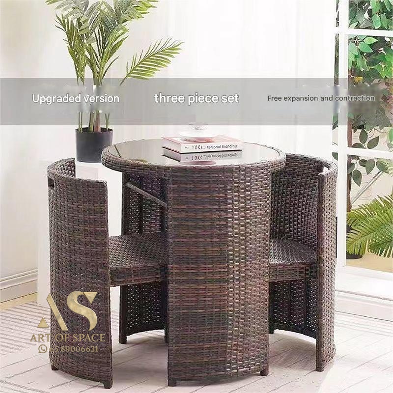 D110 – Modern Rattan 3 – Piece Outdoor Set with Table & Chairs