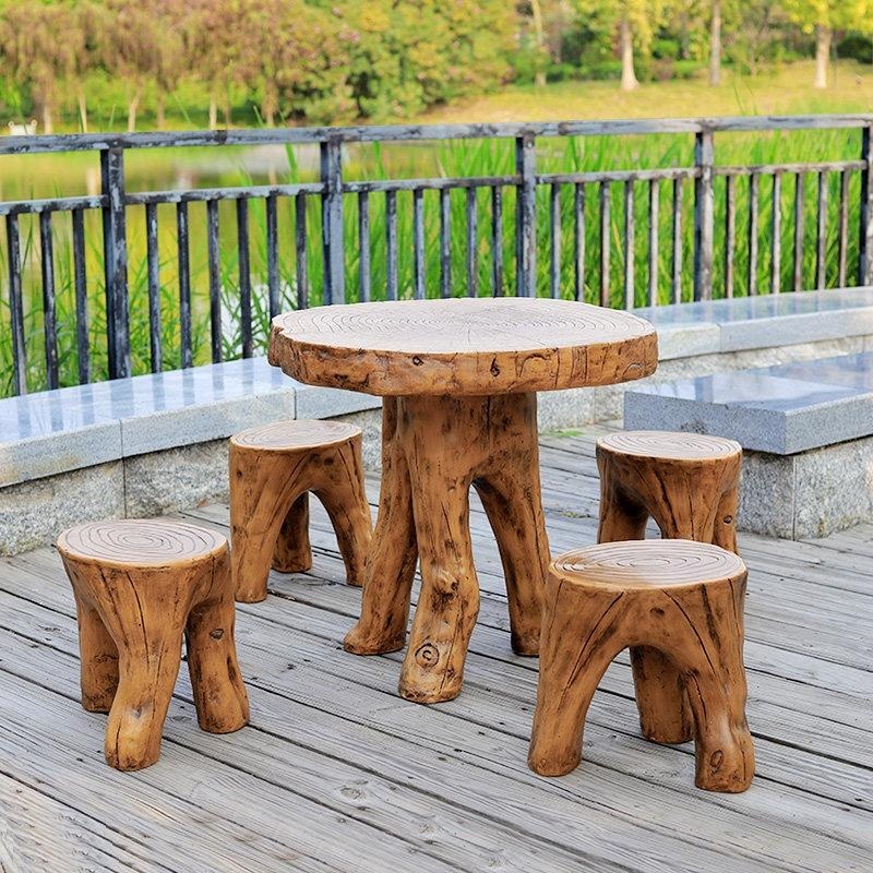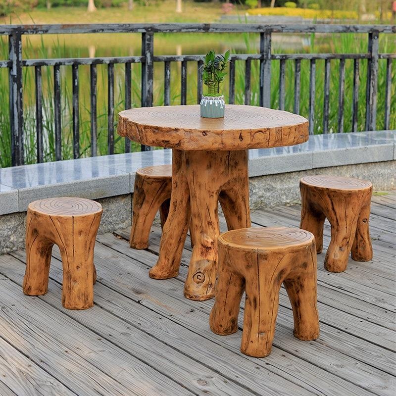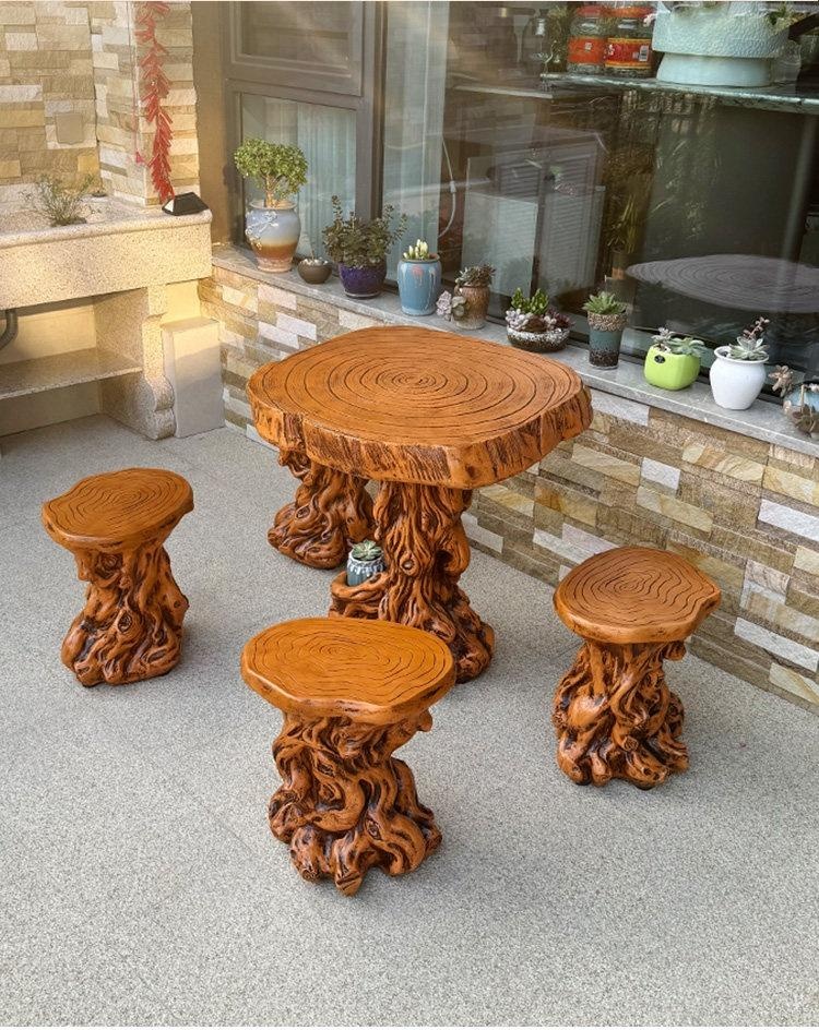 Courtyard – Retro Fiberglass Outdoor Table Set with Stools, Waterproof