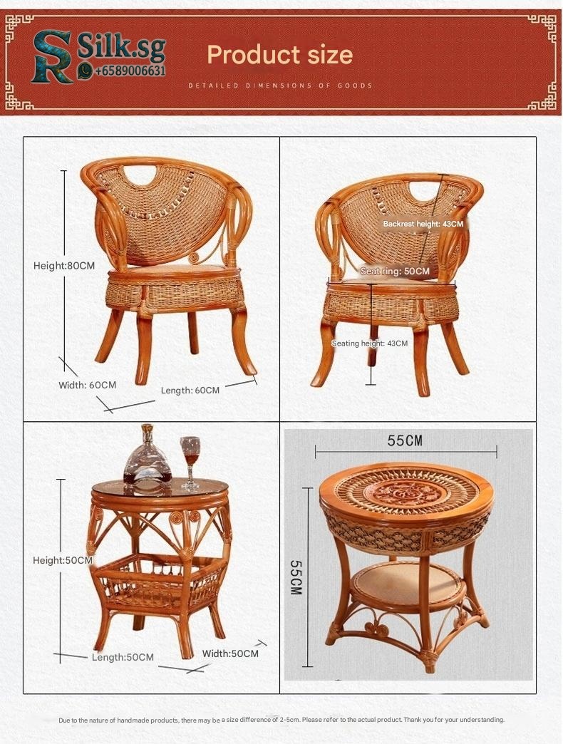 | Color | Bead Coffee Table 50CM (with glass), Fish Coffee Table 55CM (with glass), Rattan 3-Piece Set with Bead Coffee Table 50 (with cushion), Rattan 3-Piece Set with Fish Coffee Table 55 (with cushion), Rattan Chair (cushion) color separated, Rattan Chair 3-Piece Set with 50 Fish Table (cushion glass) color separated, Single Rattan Chair |