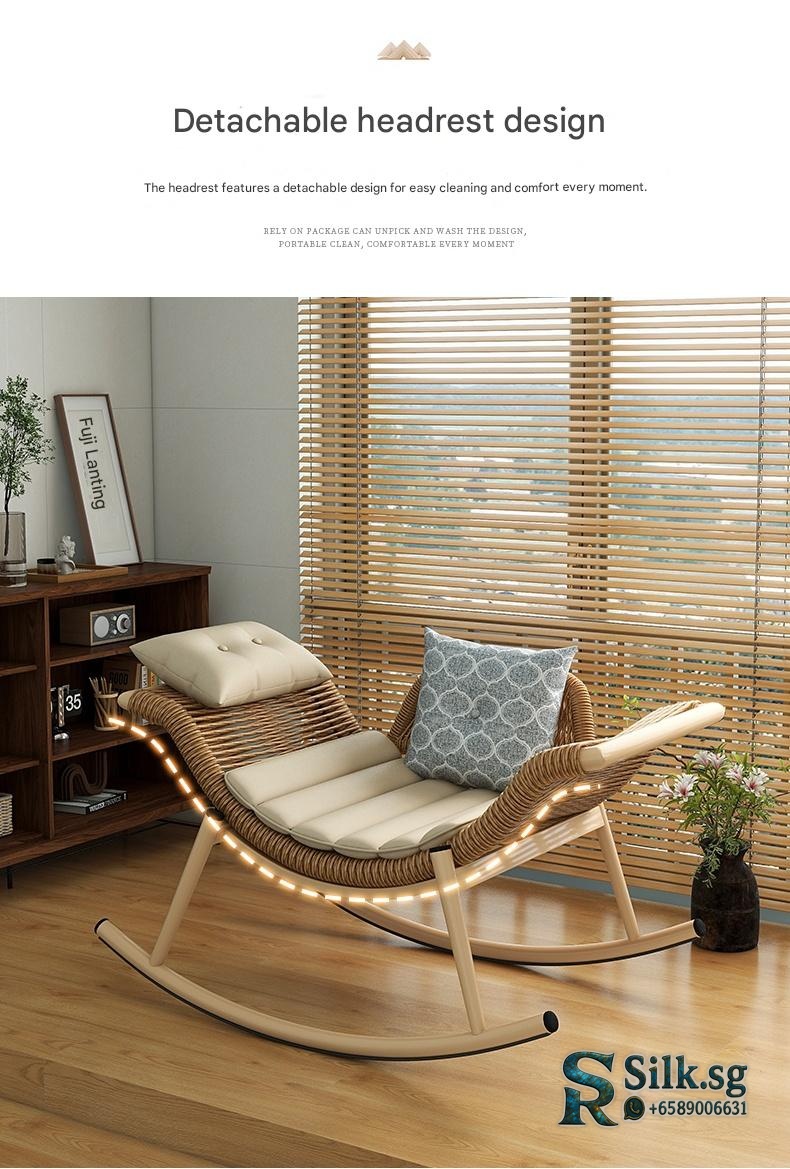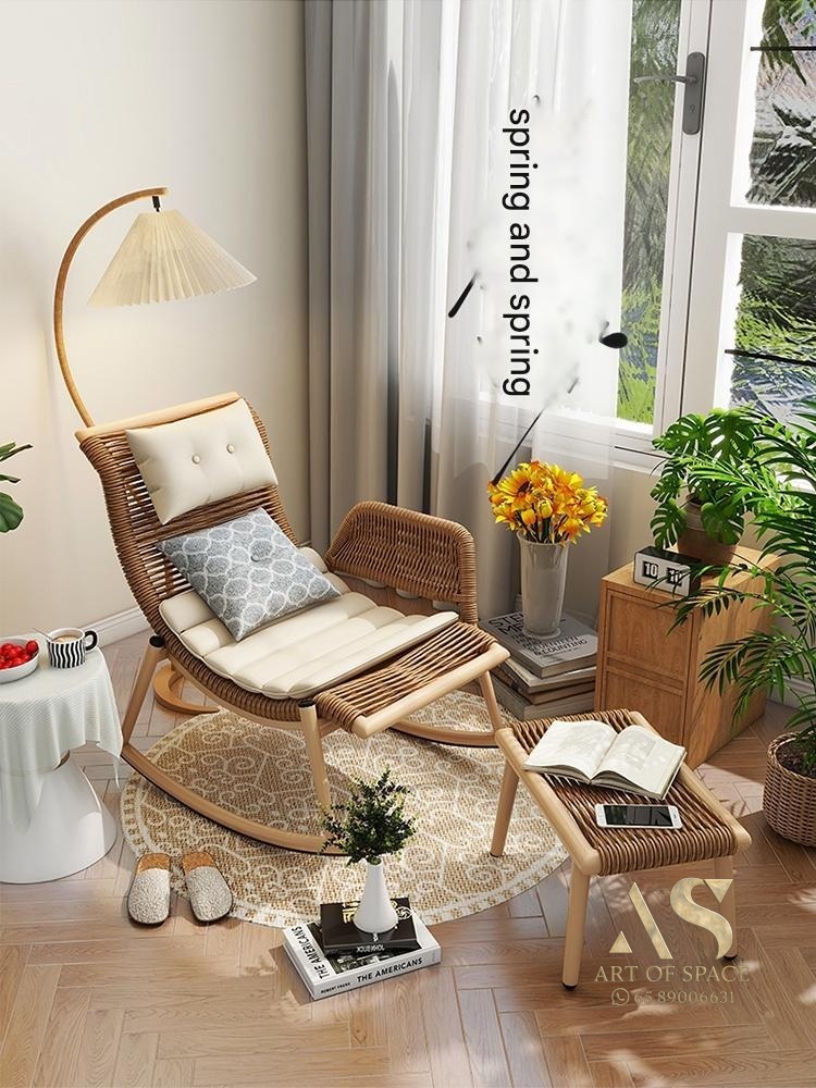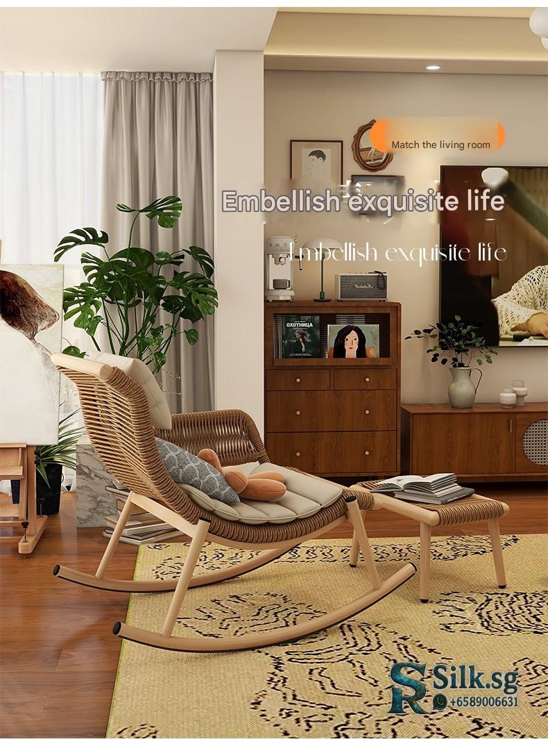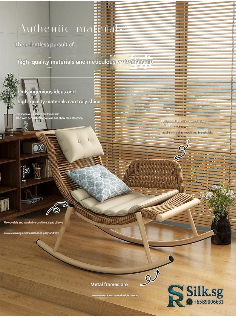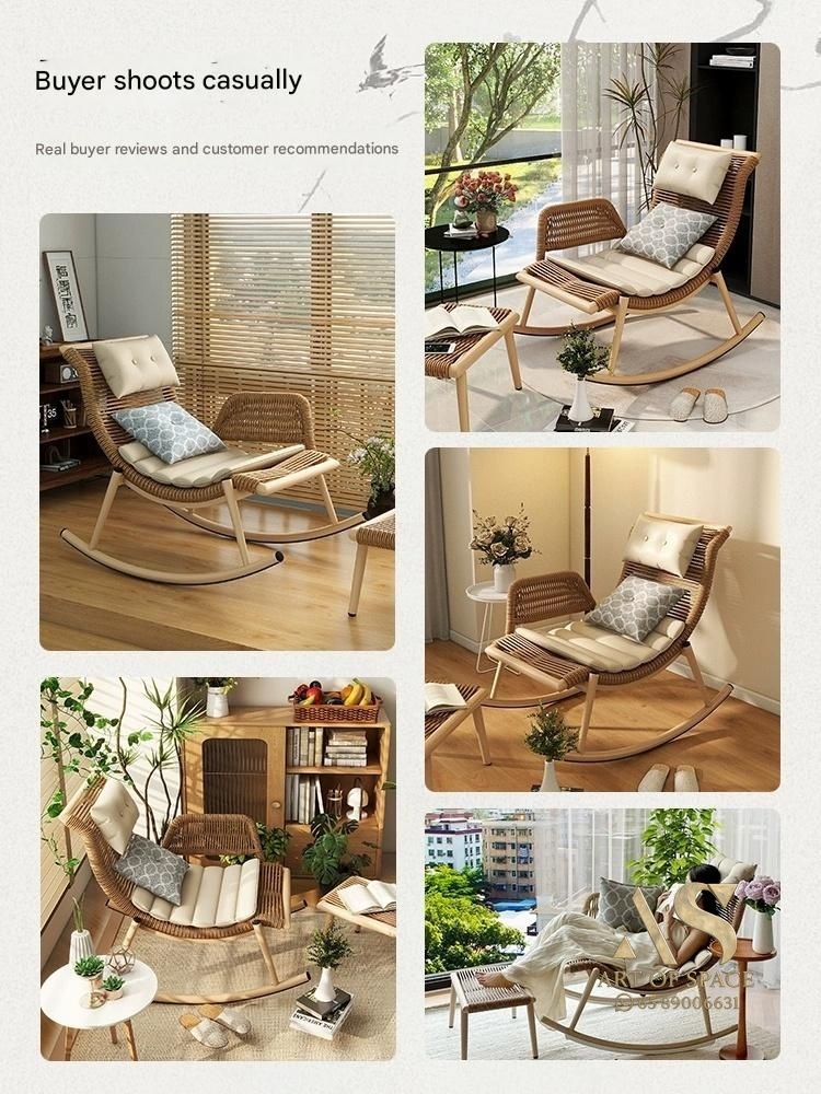 Enjoy relaxing moments with this versatile rattan rocking chair, perfect for indoor or outdoor spaces. Its artistic design and adjustable comfort features provide a cozy escape, making every leisure moment truly special. Elevate your relaxation today.