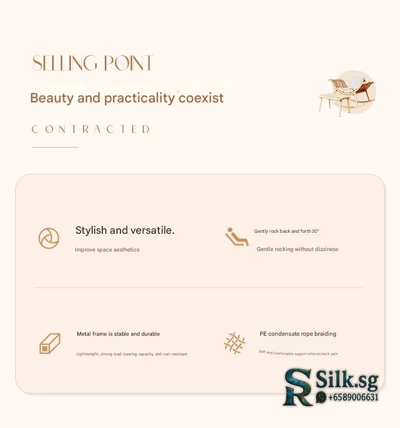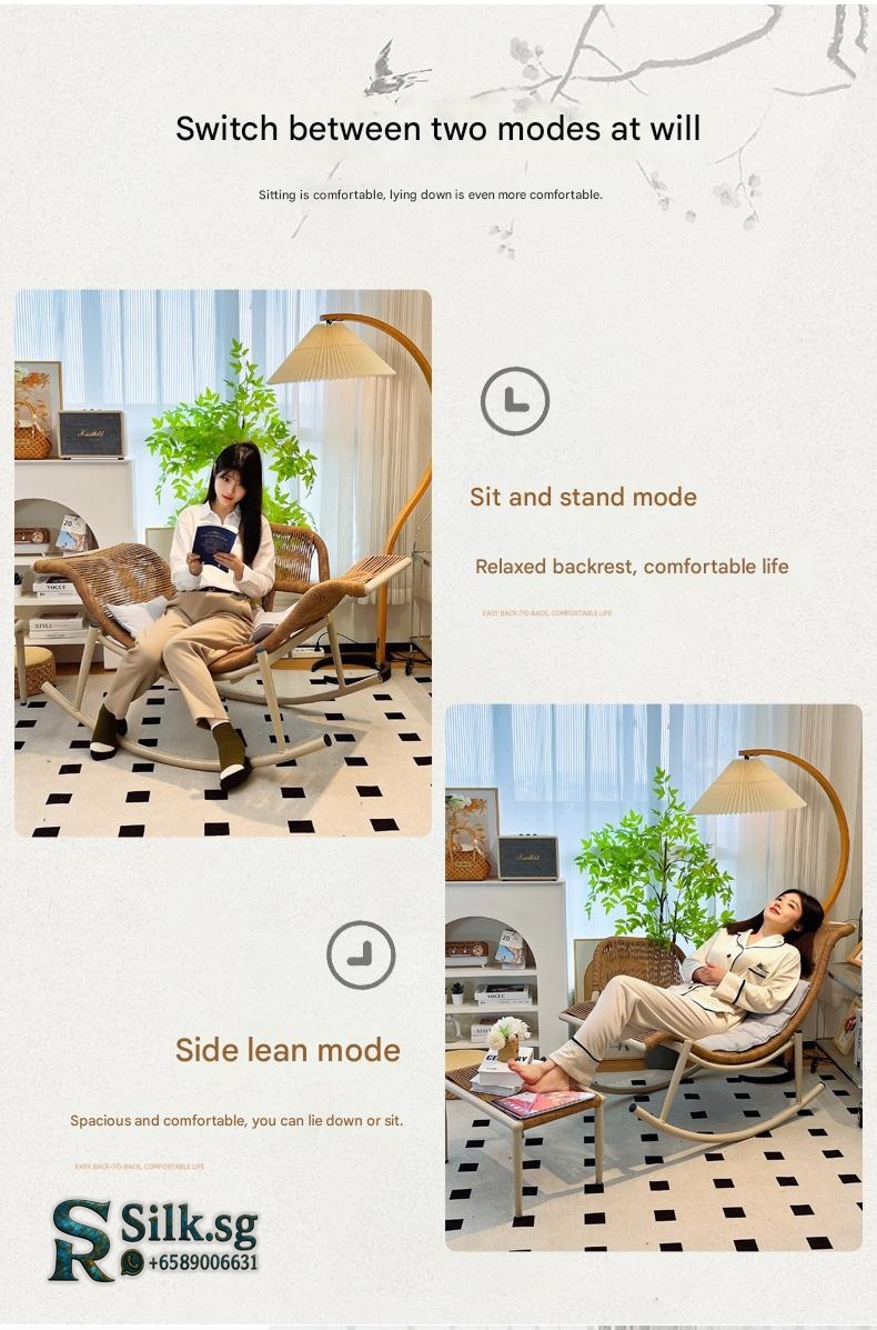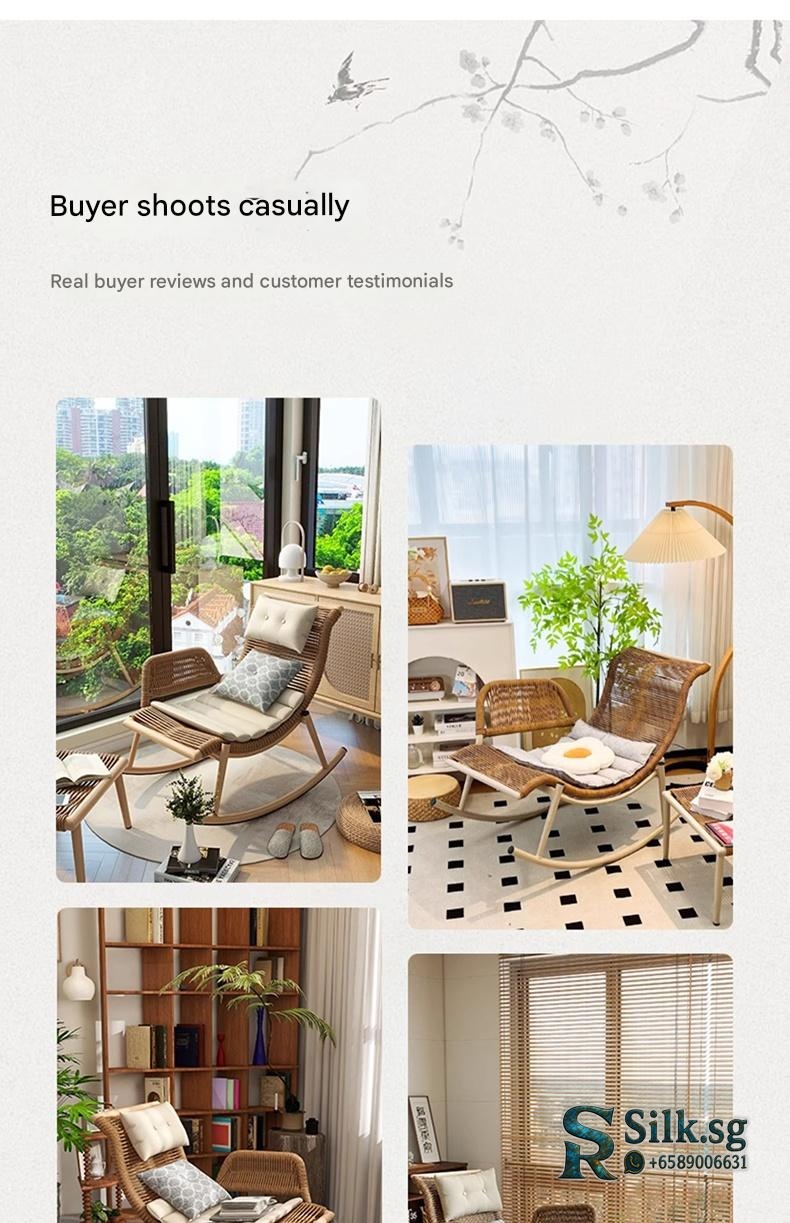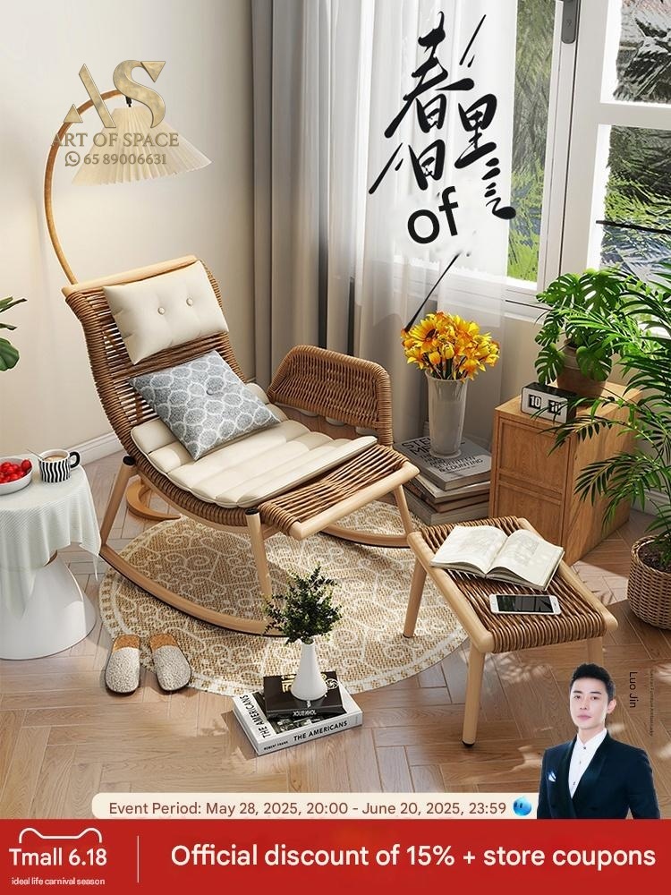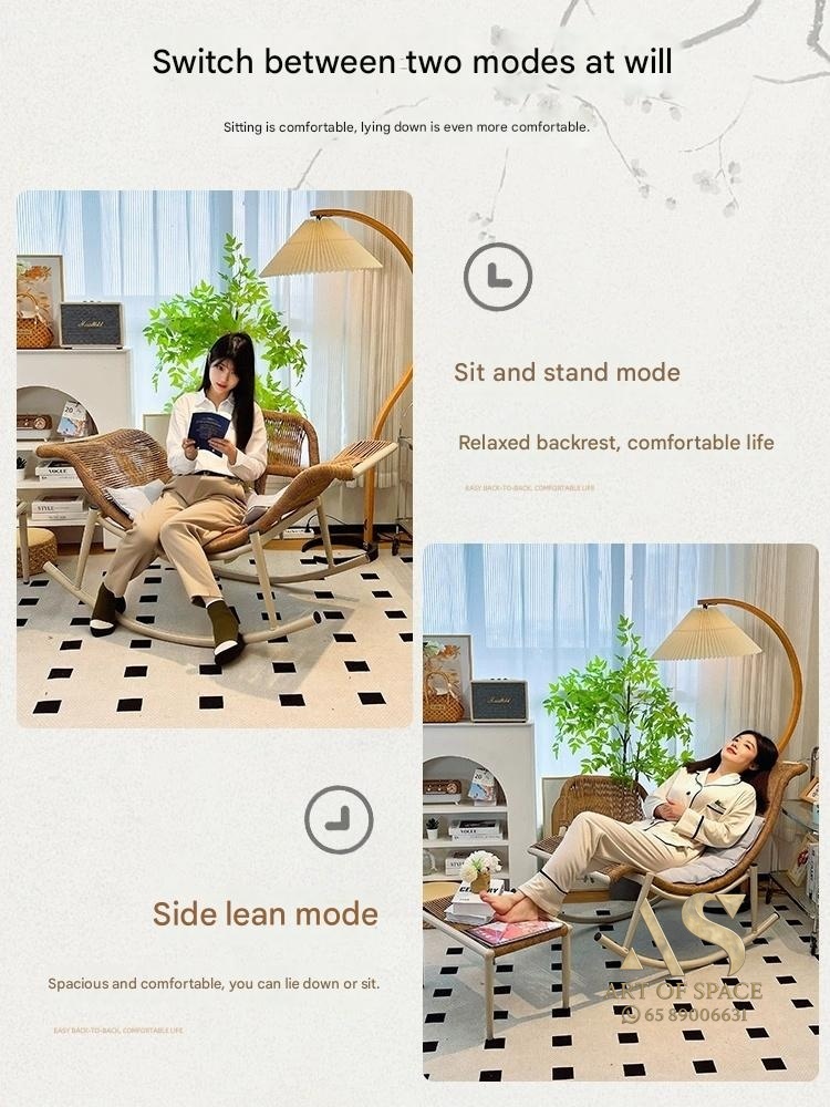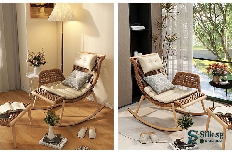Enjoy relaxing moments with this versatile rattan rocking chair, perfect for indoor or outdoor spaces. Its artistic design and adjustable comfort features provide a cozy escape, making every leisure moment truly special. Elevate your relaxation today.
