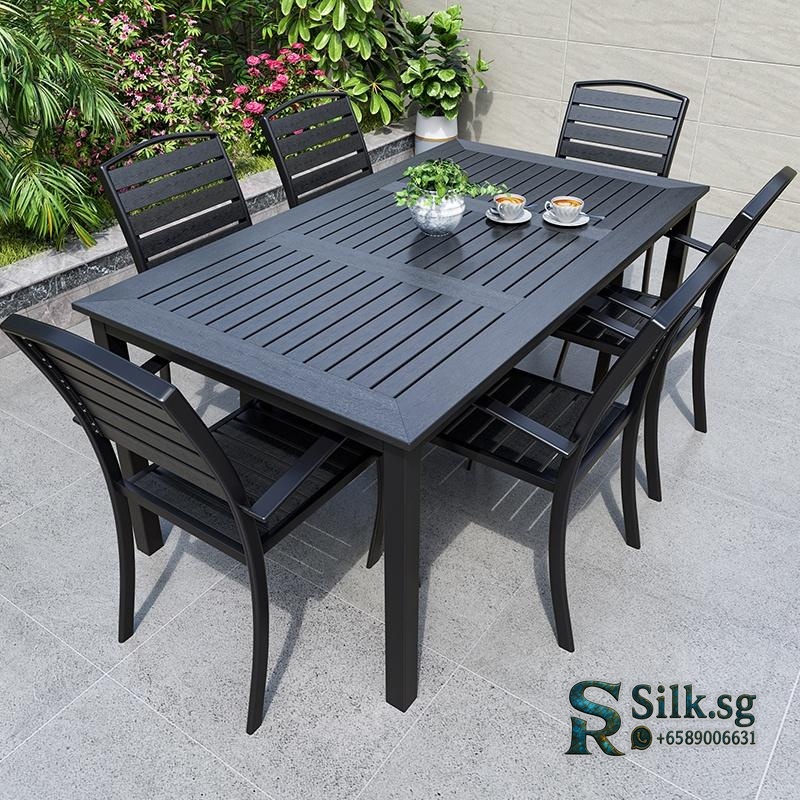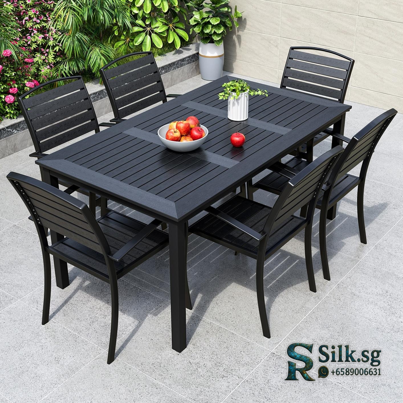 Premium Outdoor Plastic Wood Table and Chair Set, Anti-Corrosion Wood Patio Aluminum Frame Widened Slate Long Table with Barca Chairs for modern lifestyles. Designed for comfort, durability, and everyday use. {‘Brand’: ‘Impression Sunshine’, ‘Model’: