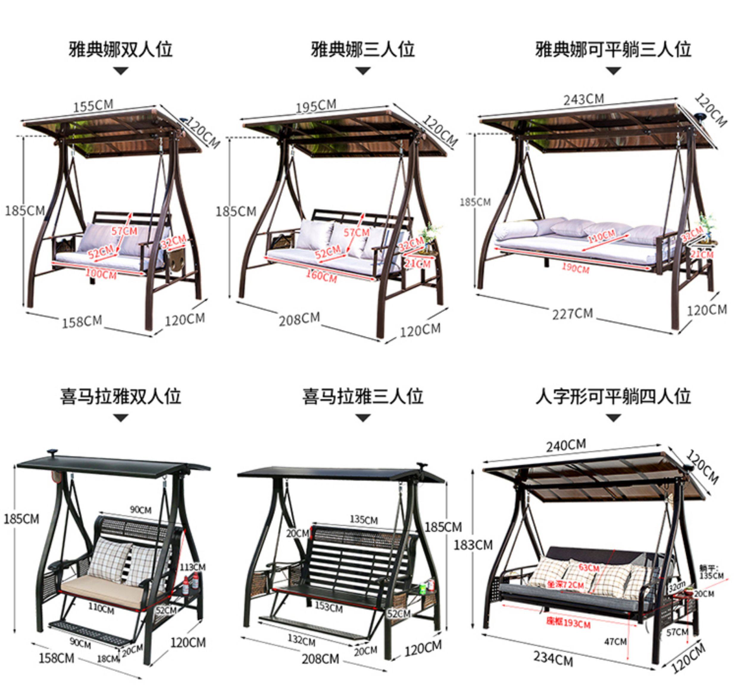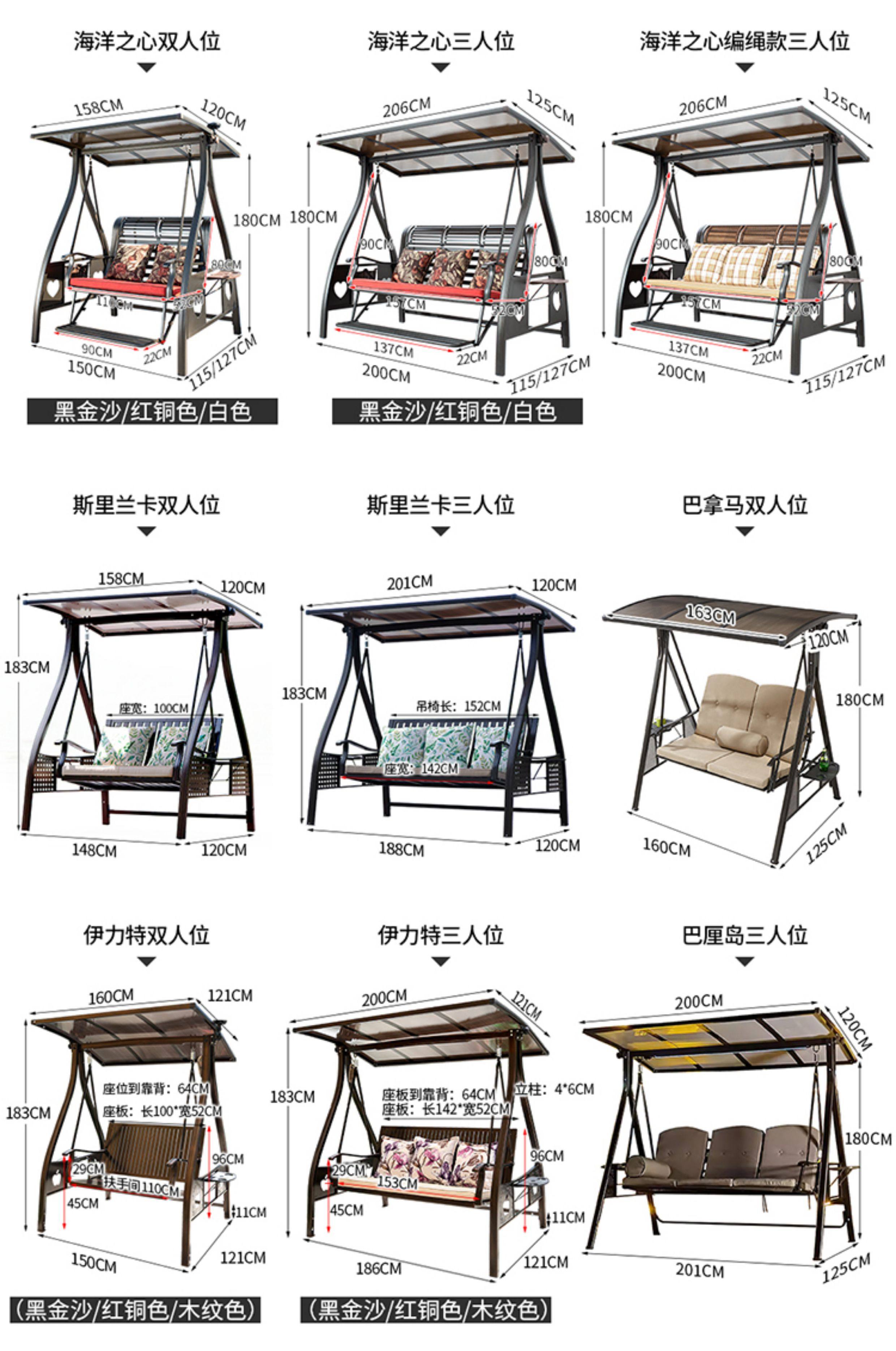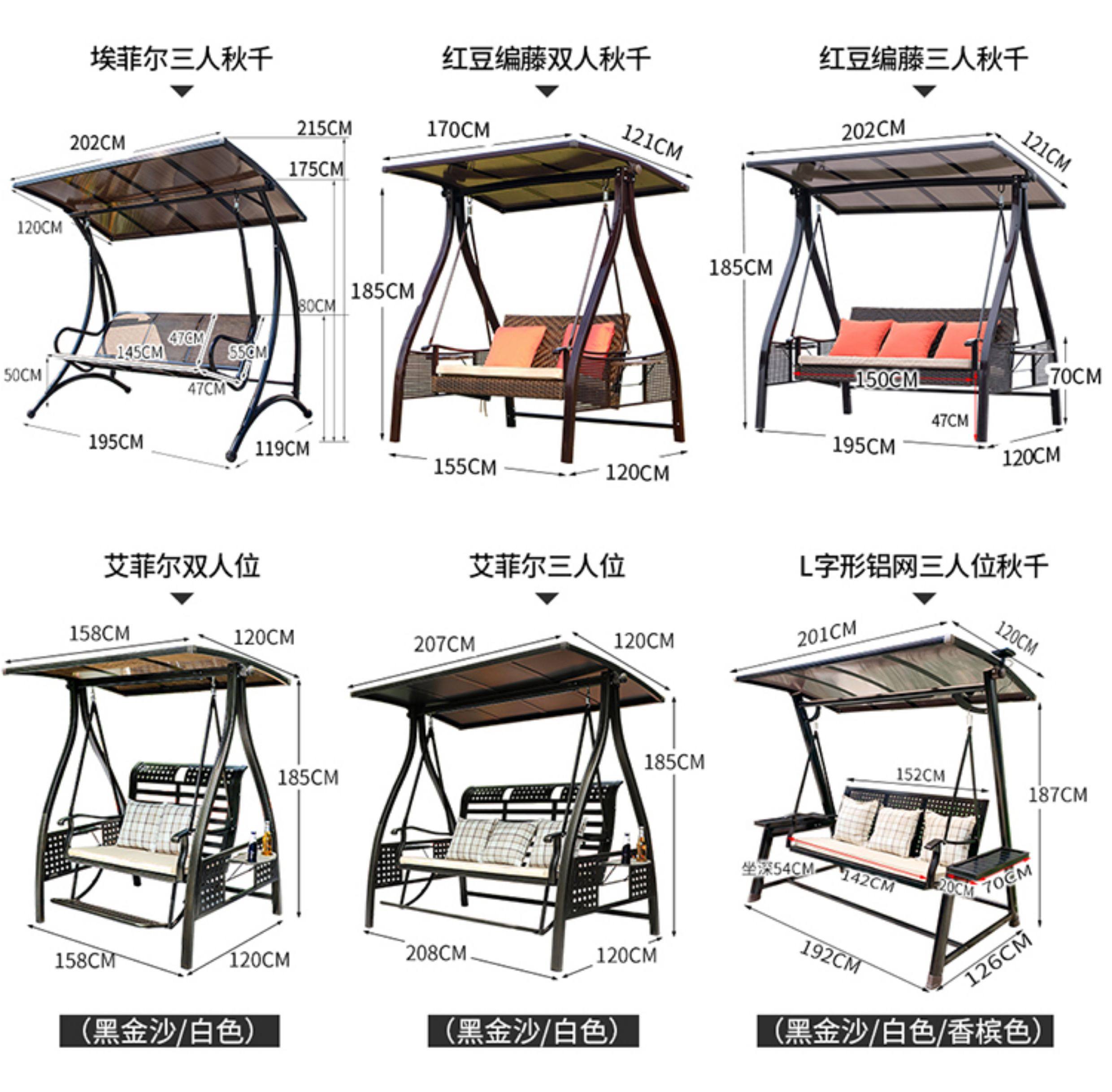 | Model | Alice 3-Seater: Aluminum Canopy & Aluminum Neck Rest & Footrest & Light, Alice 3-Seater: Galvanized Steel & PC Board Top (Dual-Color Light Strip), Alps 2-Seater (Black Gold Sand): Upgraded Cast Aluminum & PC Board Top & Light, Alps 2-Seater (Red Copper): Upgraded Cast Aluminum & PC Board Top & Light, Alps 2-Seater: Aluminum Canopy & Footrest & Light, Alps 2-Seater: PC Board Top & Footrest & Light, Alps 3-Seater (Black Gold Sand): Upgraded Cast Aluminum & PC Board Top & Light, Alps 3-Seater (Champagne): Upgraded Cast Aluminum & PC Board Top & Light, Alps 3-Seater (Red Copper): Upgraded Cast Aluminum & PC Board Top & Light, Alps 3-Seater: Aluminum Canopy & Footrest & Light, Alps 3-Seater: PC Board Top & Footrest & Light, Athena 2-Seater: PC Board Top & Light, Athena 3-Seater: PC Board Top & Light, Bali 3-Seater: Carbon Steel & PC Board Top (With Light), Baoli A-Type 3-Seater: Hydraulic Aluminum Tray & Aluminum Canopy & Light, Baoli A-Type 3-Seater: Hydraulic Aluminum Tray & PC Canopy & Light, Eiffel (Horizontal Pattern) 3-Seater: Aluminum Canopy & Neck Rest Footrest & Light, Eiffel (Plum Blossom Pattern) 3-Seater: Aluminum Canopy & Neck Rest Footrest & Light, Eiffel 3-Seater: Carbon Steel & PC Board Top (No Light), Himalaya 2-Seater: Aluminum Canopy & Neck Rest Footrest & Light, Himalaya 3-Seater: Aluminum Canopy & Neck Rest Footrest & Light, Jakarta 3-Seater: Aluminum Canopy & Neck Rest & Footrest & Light, Jakarta 3-Seater: PC Canopy & Neck Rest & Footrest & Light, L-Type Ocean Heart 2-Seater: Aluminum Canopy & Neck Rest Footrest & Light, L-Type Ocean Heart 2-Seater: PC Board Top & Neck Rest Footrest & Light, L-Type Ocean Heart 3-Seater: Aluminum Canopy & Neck Rest Footrest & Light, L-Type Ocean Heart 3-Seater: PC Board Top & Neck Rest Footrest & Light, L-Type Ocean Heart 3-Seater: PC Board Top & Rattan Neck Rest Footrest & Light, Liuyuxuan A-Type 3-Seater: Aluminum Board Top & Aluminum Neck Rest & Footrest & Light, Liuyuxuan A-Type 3-Seater: PC Board Top & Aluminum Neck Rest & Footrest & Light, Melia 2-Seater: PC Board Top & Neck Rest & Footrest & Light, Melia 3-Seater: PC Board Top & Neck Rest & Footrest & Light, Ocean Heart 2-Seater (Black Gold Sand): Aluminum Canopy & Aluminum Neck Rest & Footrest & Light, Ocean Heart 2-Seater (Black Gold Sand): PC Board Top & Aluminum Neck Rest & Footrest & Light, Ocean Heart 3-Seater (Black Gold Sand): Aluminum Canopy & Aluminum Neck Rest & Footrest & Light, Ocean Heart 3-Seater (Black Gold Sand): PC Board Top & Aluminum Neck Rest & Footrest & Light, Ocean Heart 3-Seater (Red Copper): PC Board Top & Aluminum Neck Rest & Footrest & Light, Ocean Heart 3-Seater: Aluminum Canopy & Aluminum Neck Rest & Footrest & Light, Ocean Heart 3-Seater: PC Canopy & Aluminum Neck Rest & Footrest & Light, Panama 3-Seater: Carbon Steel & PC Board Top (No Light), Plum Blossom Eiffel 2-Seater: PC Board Top & Aluminum Neck Rest & Footrest & Light, Plum Blossom Eiffel 3-Seater: PC Board Top & Aluminum Neck Rest & Footrest & Light, Sit & Recline A-Type 4-Seater: PC Board Top & Light, Sit & Recline Alice 4-Seater: Aluminum Canopy & Light, Sit & Recline Herringbone 4-Seater: PC Board Top & Light, Sri Lanka 2-Seater: PC Board Top & Footrest & Light, Sri Lanka 2-Seater: PC Board Top & Light, Sri Lanka 3-Seater: PC Board Top & Footrest & Light, Sri Lanka 3-Seater: PC Board Top & Light, Thickened Aluminum Alloy L-Type Aluminum Mesh 3-Seater: PC Board Top, Aluminum Mesh Backrest, Footrest & Light, Thickened Aluminum Alloy L-Type Victoria 2-Seater: Aluminum Canopy, Neck Rest, Footrest & Light, Thickened Aluminum Alloy L-Type Victoria 3-Seater: Aluminum Canopy, Neck Rest, Footrest & Light, Vienna 2-Seater: Galvanized Steel & PC Board Top & Light, Vienna 2-Seater: Galvanized Steel & PC Board Top (No Light), Vienna 3-Seater: Galvanized Steel & PC Board Top & Light, Vienna 3-Seater: Galvanized Steel & PC Board Top (No Light) |